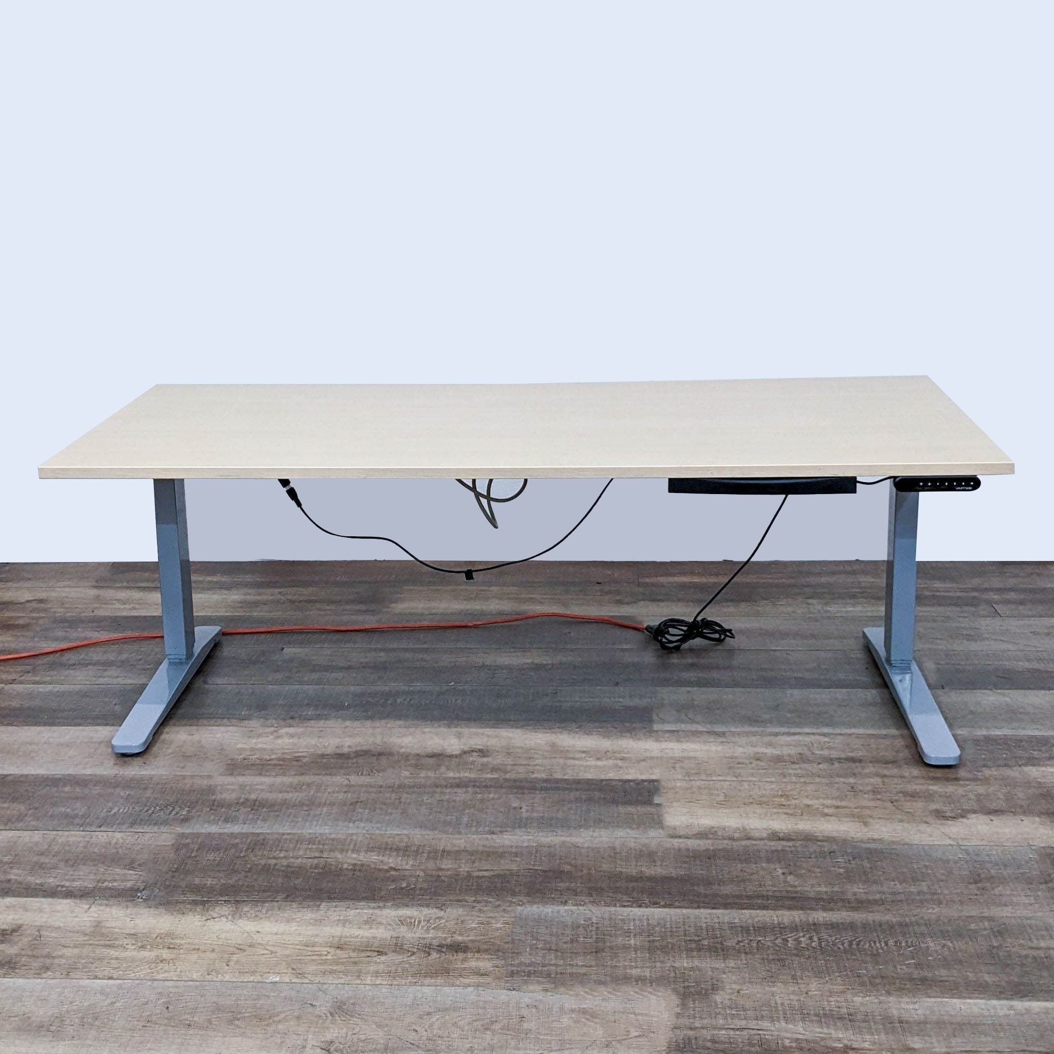Transform your workspace with this modern and spacious six foot office desk. The desk features a generous surface area, ideal for spreading out documents or setting up multiple monitors for a productive workflow and the motor controls adjustable heights.