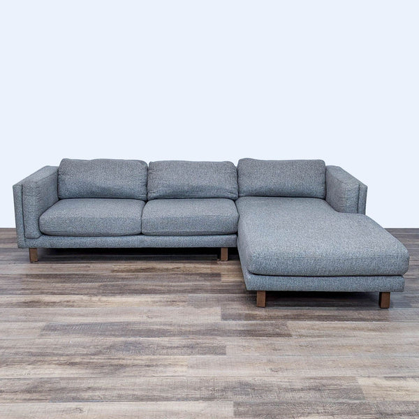 This 5- Piece Contemporary Dining Set by Crate & Barrel features the Pratico Grigio Expandable Dining Table and 4 Lowe Dining Chairs.