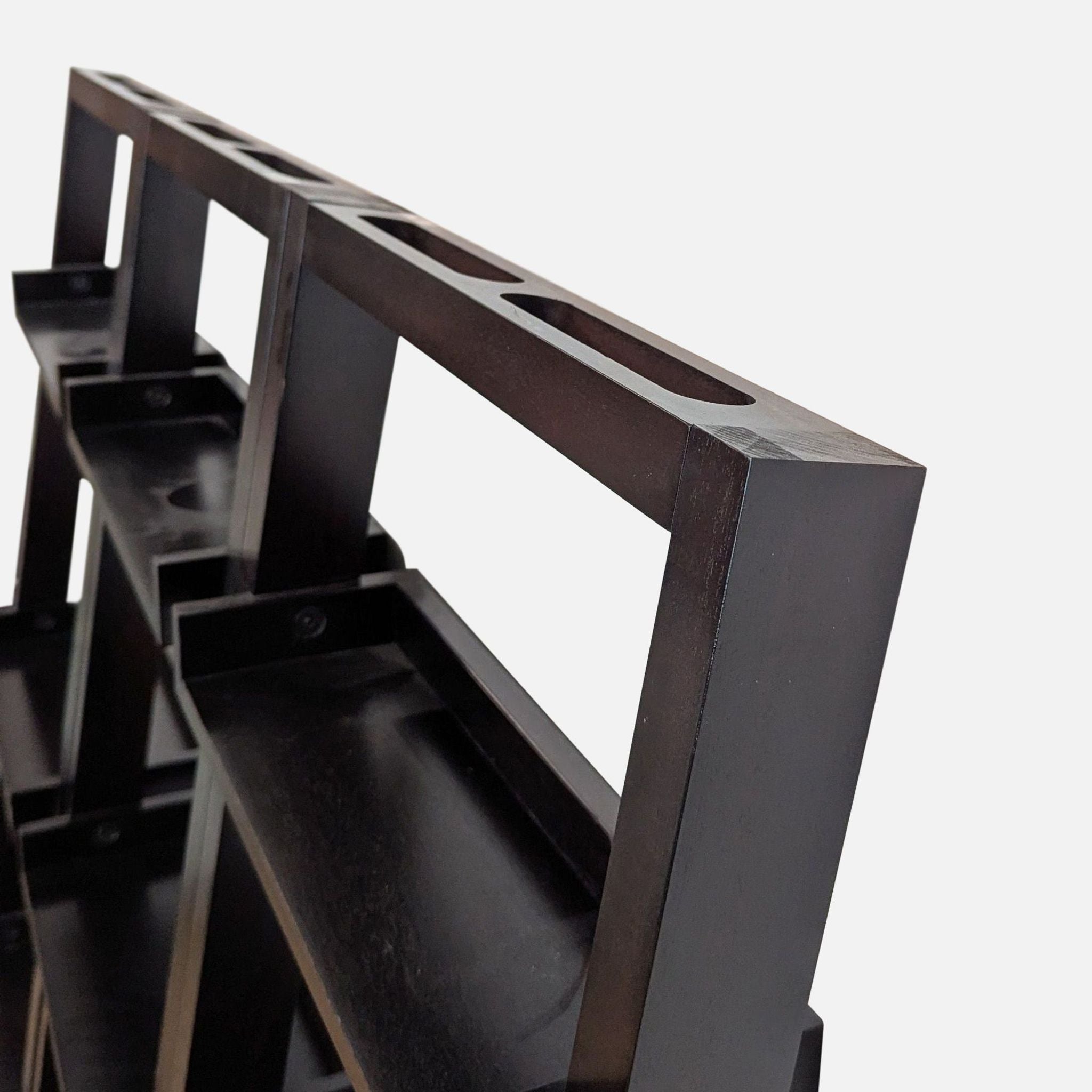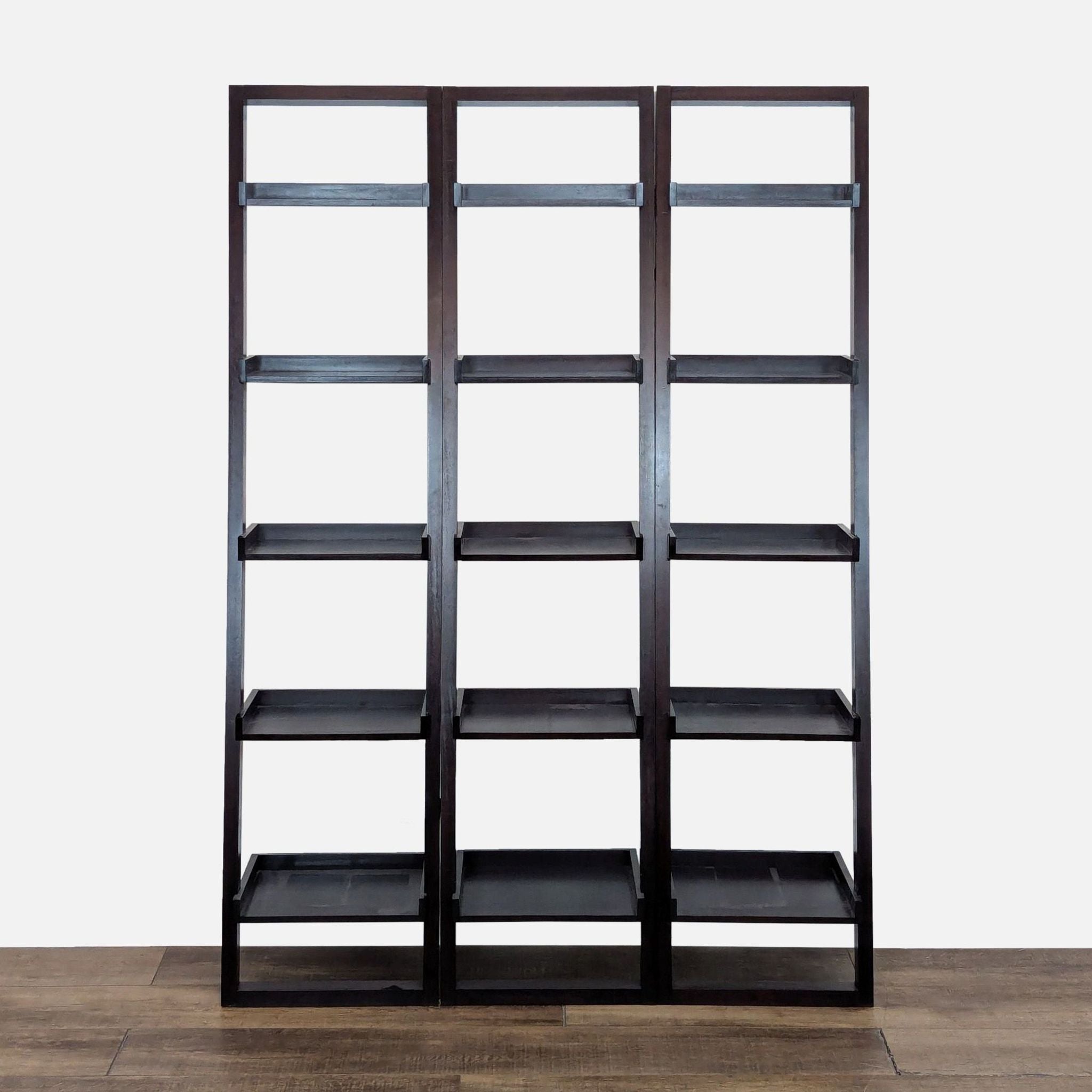 This set is of three modular solid hardwood bookcases with five deep shelves and thick shelf fronts in a black finish