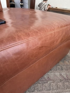 The OG Couch Potato Sectional with right bumper features an oversized, rounded silhouette and contemporary low-profile design upholstered in Marfa Terra Leather.