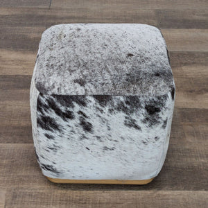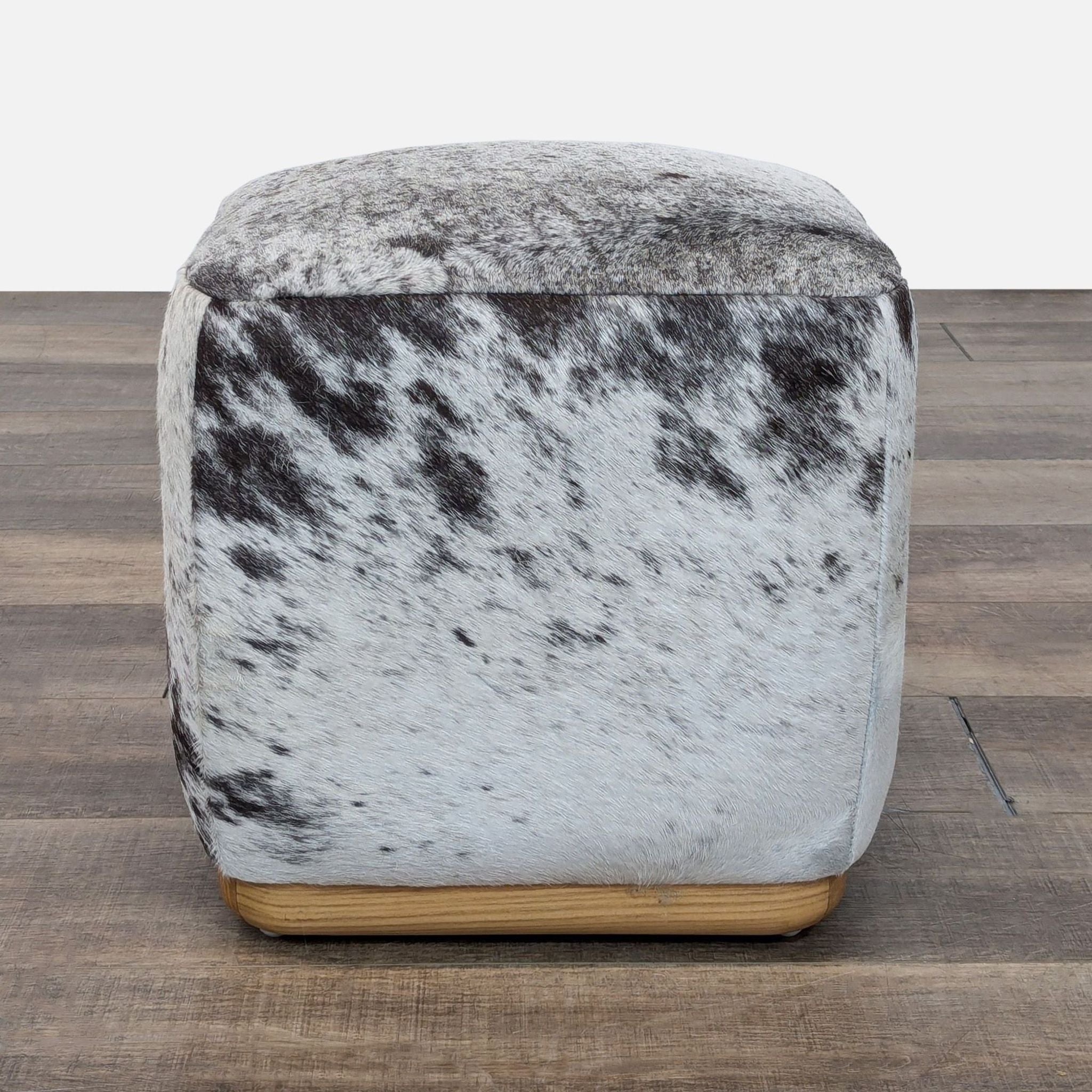 This stylish pouf ottoman by SOBU features a unique cowhide patterned upholstery and a sturdy wood base.