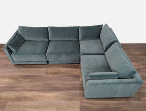 Features plush deep seat cushions, casual pillowy-soft back cushions, and canted seat and back construction. Upholstered in velvet fabric.