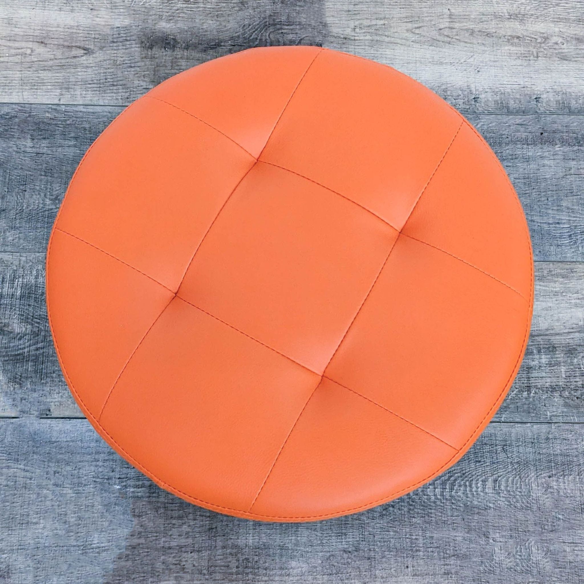 18" Round Orange tufted Top Ottoman On Chrome Base