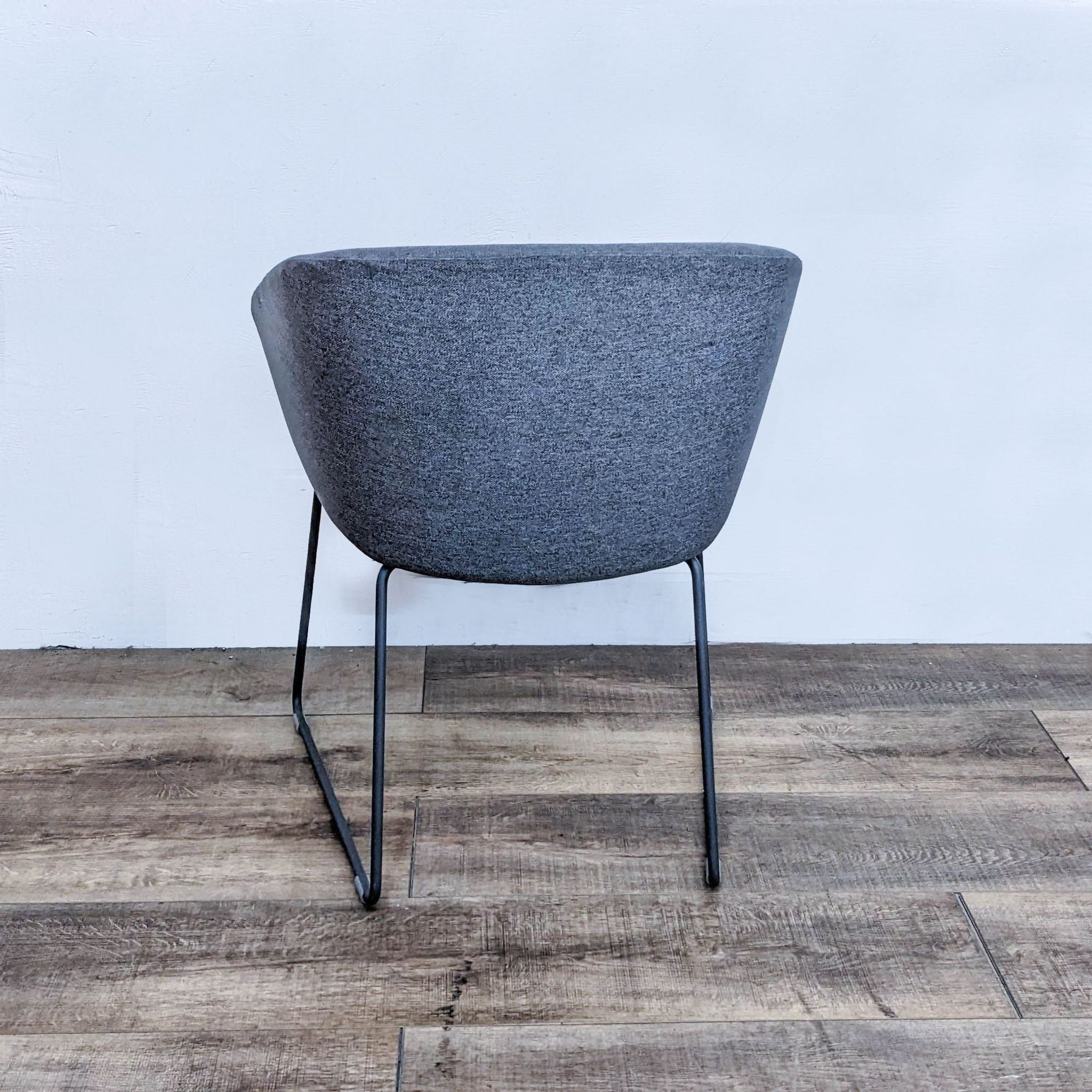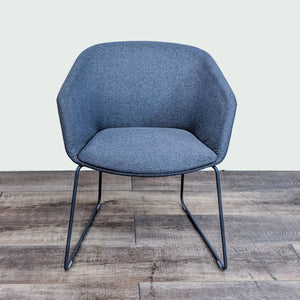 The Pitch Sled Chair by Poppin is upholstered in durable woven Gabriel Medley fabric and impeccably-tailored upholstery and cushioned for comfort with a painted steel base.