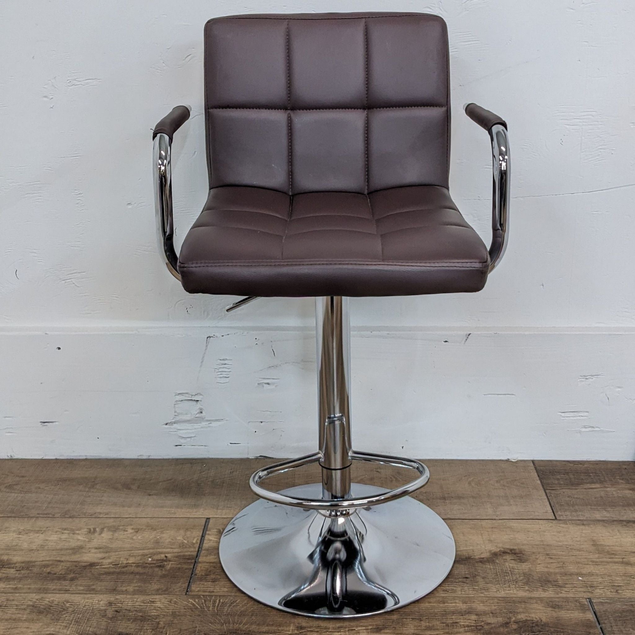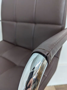 Brown Leather Look Modern Adjustable Height Swivel Stool With Arms On Chrome Base