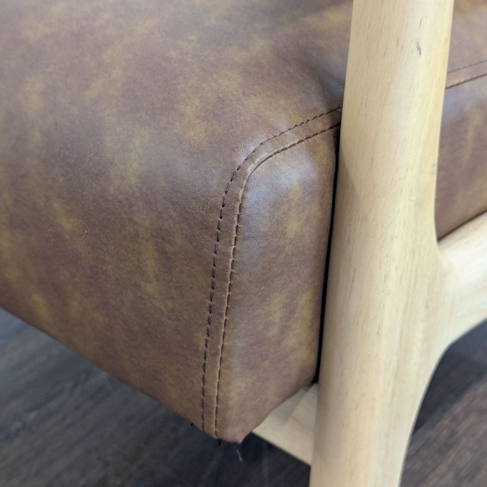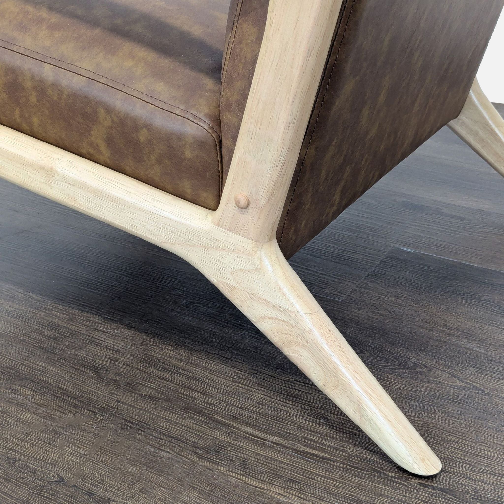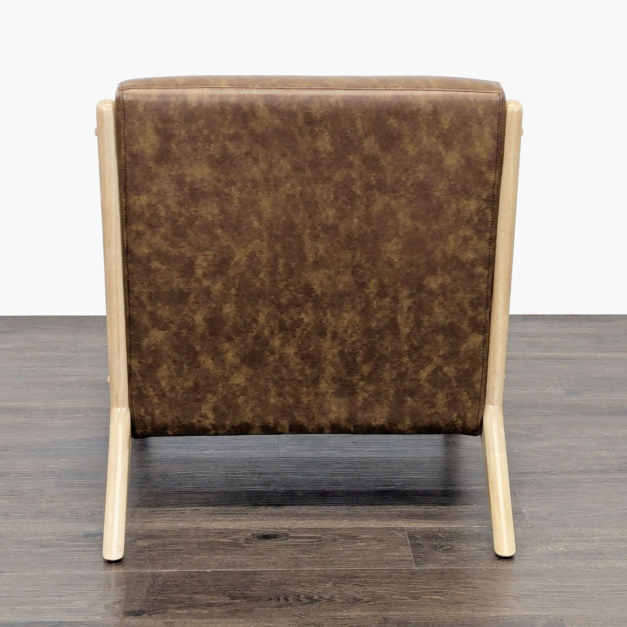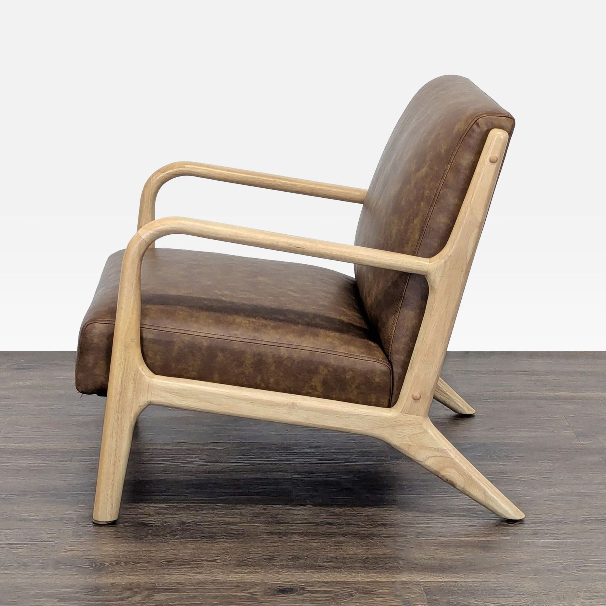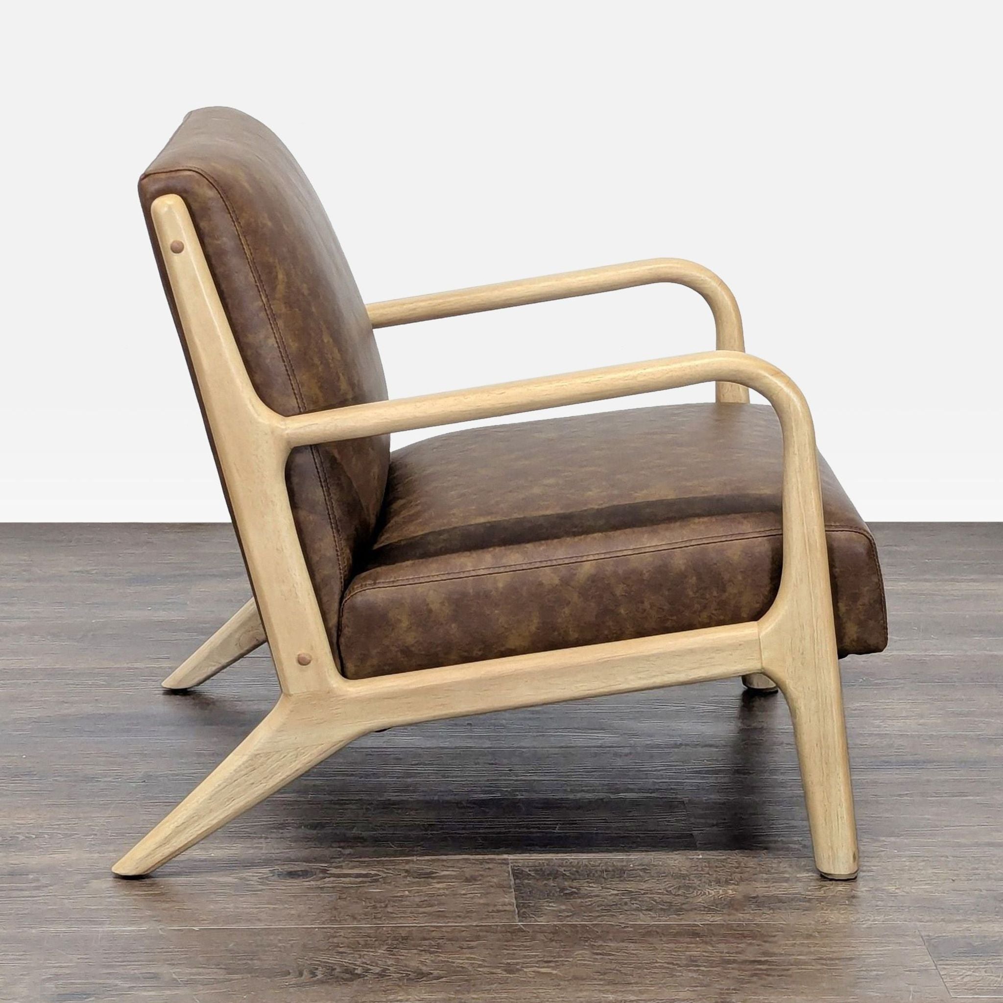 This Target lounge chair offers a comfortable seat with its padded faux leather cushion and backrest. The chair features a sturdy light wood frame with gently curved arms for a modern yet classic look. Its versatile brown color and simple design make it easy to match with any room decor. Perfect for relaxing in your living room or reading nook.
