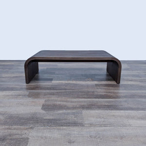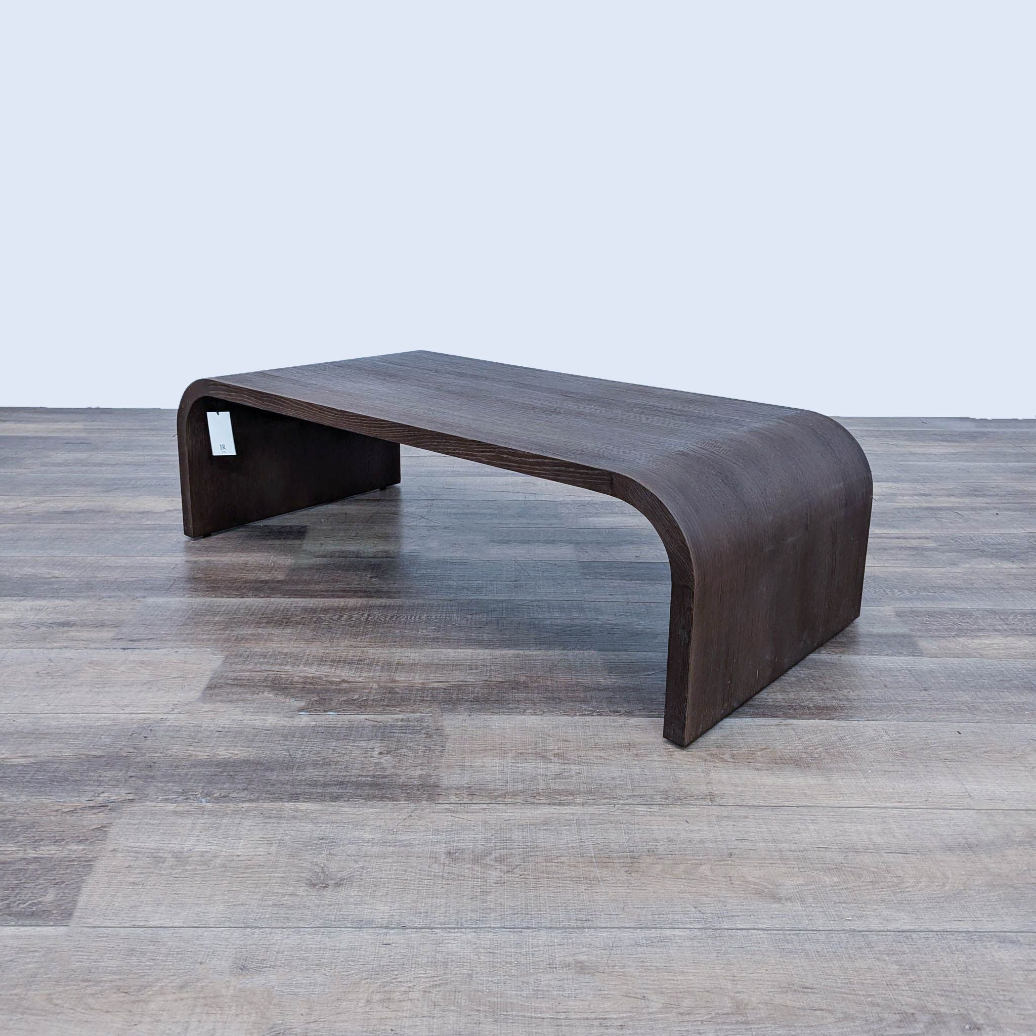 Recalling the pared-down profiles of mid-century modernism, this waterfall coffee table captures that era’s style. Crafted of oak, the low-slung silhouette features rounded edges.