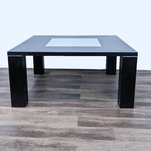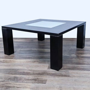 The Elite Collection 7-piece dining set by Sharelle is constructed from durable wood veneer for reliable strength. Thick block legs ensure a sturdy stance. Chrome strips between table top and legs provide decorative accenting. Sand blasted glass insert in table top adds dynamic contrast. Wenge finish for added elegance. Fits up to eight people comfortably. Included are six microfiber dining chairs.