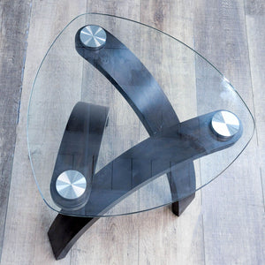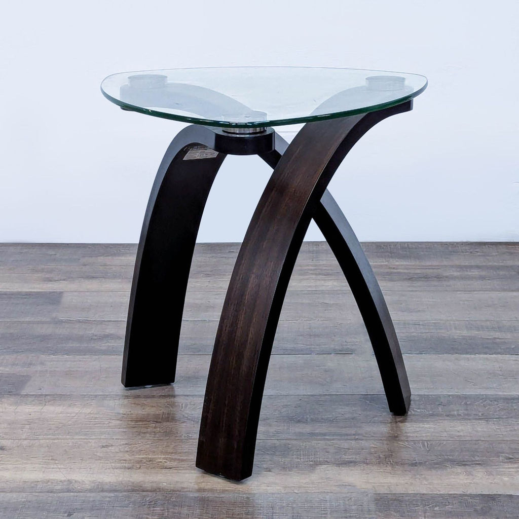 Triangular Glass Top End Table with Bentwood Legs - Reperch