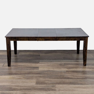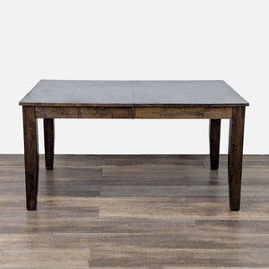 Extension is built into the table and lifts up. When closed, the table length measures 60 inches.