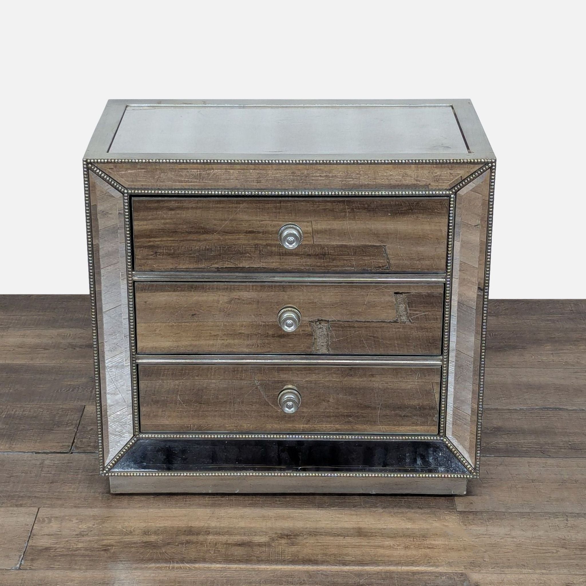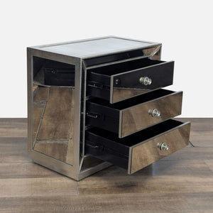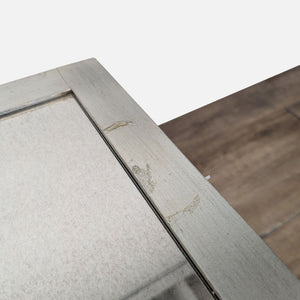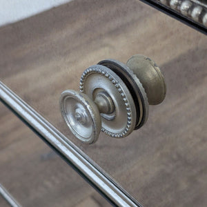 The chest has a multi-step finishing process that starts with hand-applied silver leaf and ends with glazing and coating the whole piece in a protective lacquer.