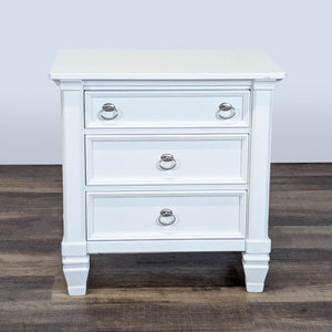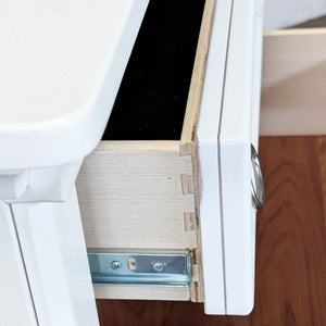 Made of veneers, wood and manmade wood. Top drawer has a felt bottom. Designed with 3 smooth-operating drawers with dovetail construction.