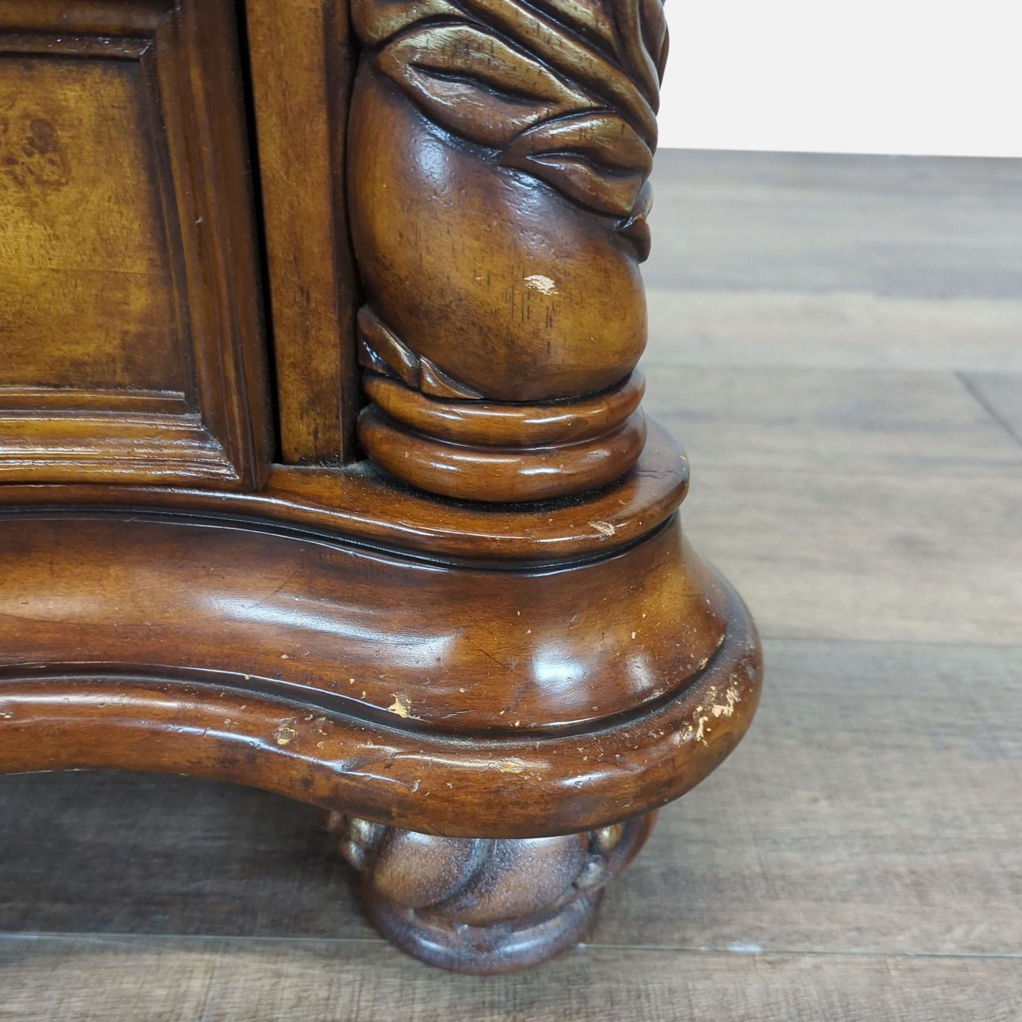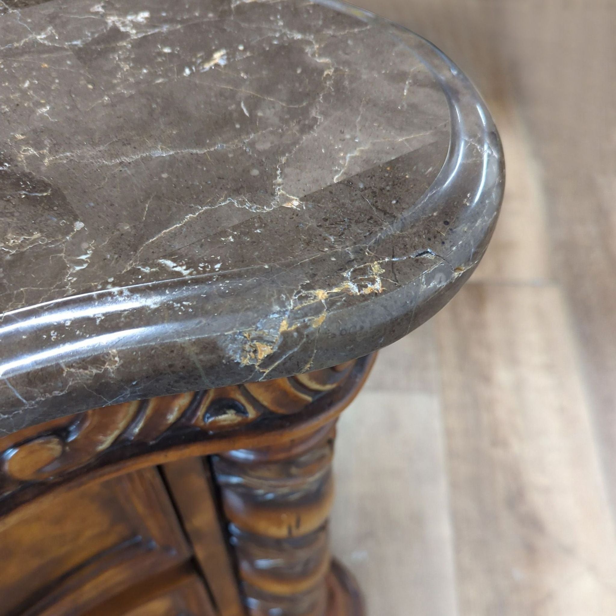 Heavily Carved Nightstand with Marble Top - Reperch