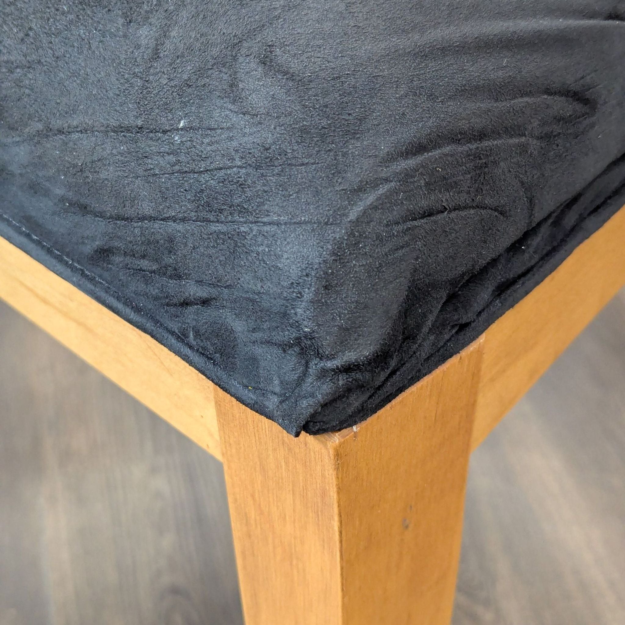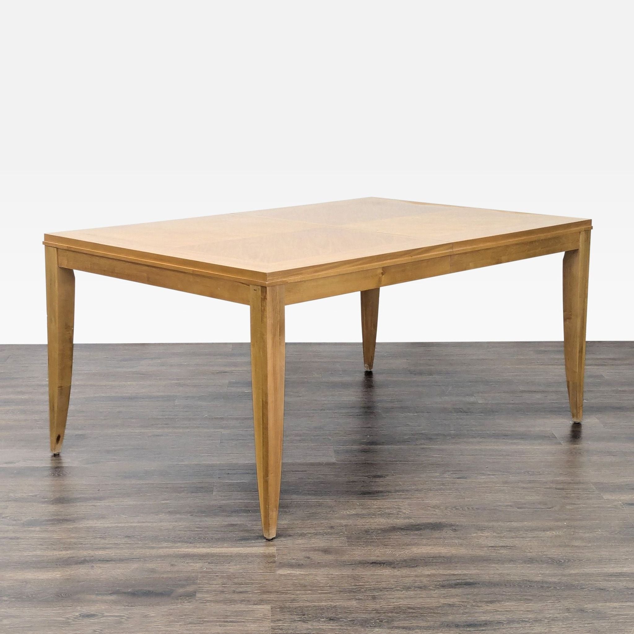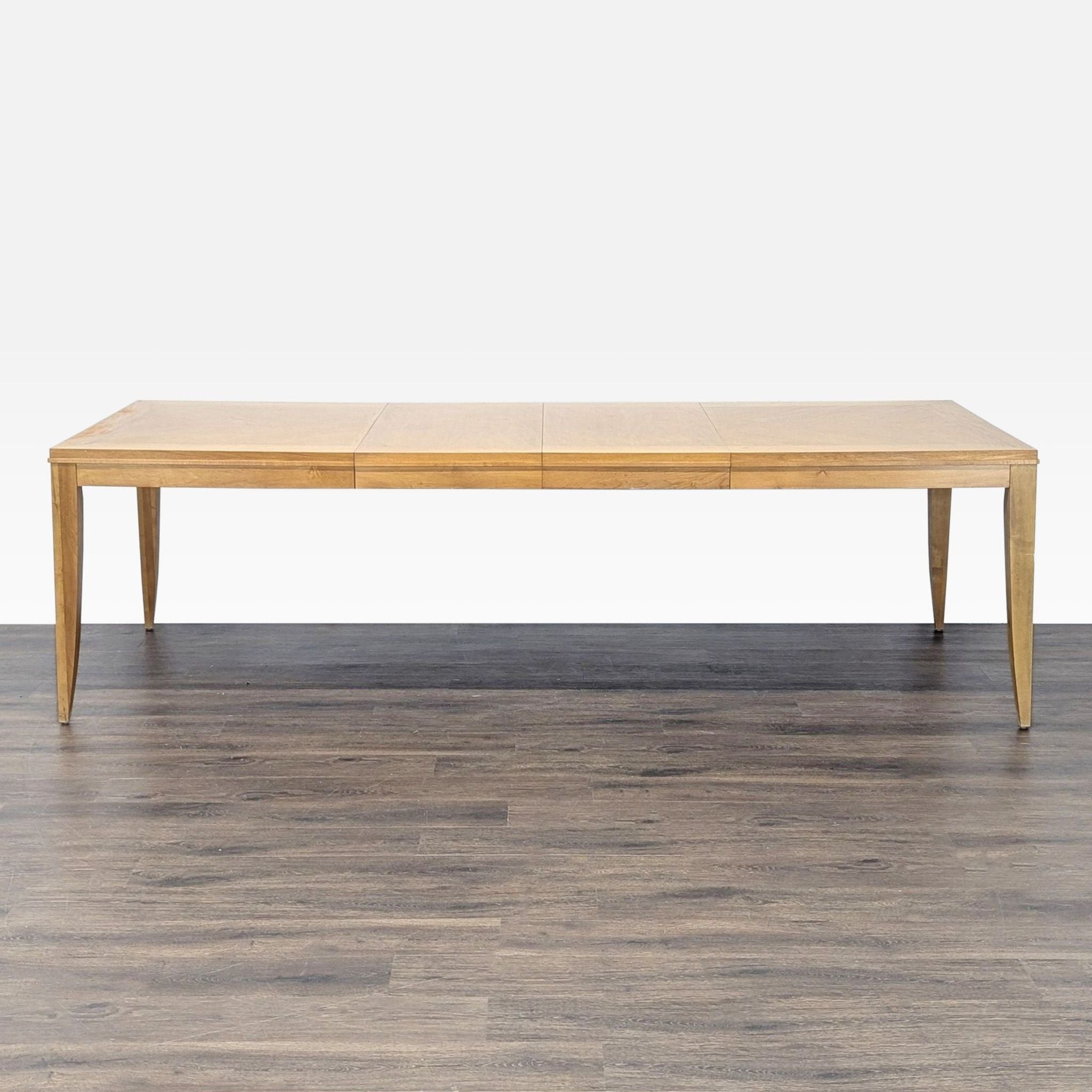 This Ethan Allen dining set includes a sturdy expandable rectangular table and five chairs with comfortable black upholstered seats. The natural wood finish adds a warm touch to any dining area. Perfect for family meals or entertaining guests, this set combines style and durability.