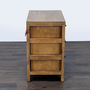 The Architectural Scaffold Nightstand has an interesting, deconstructed feature of visible side drawers. It is constructed of Pine and pine veneers.