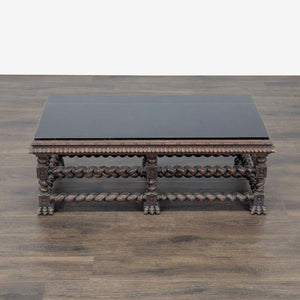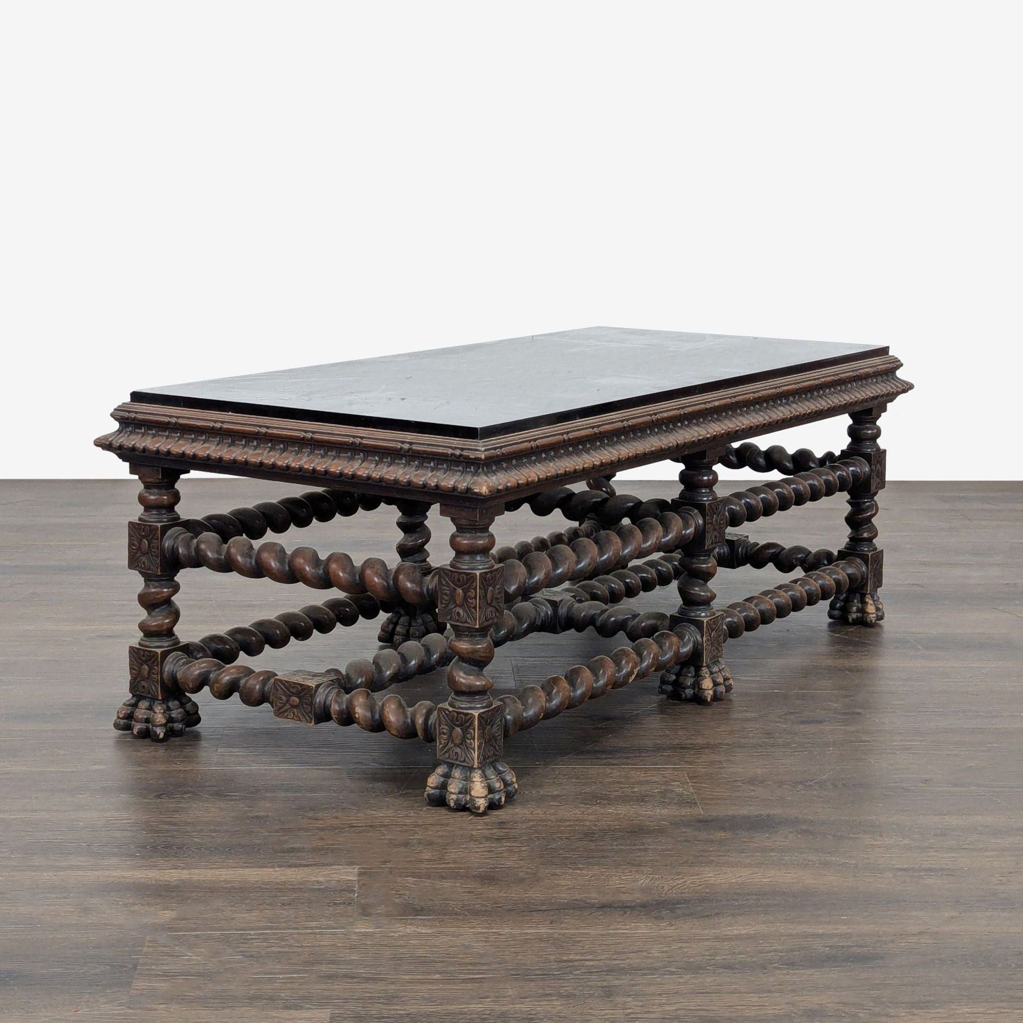 Barley twist frame with carved apron and feet and carved floral embellishments