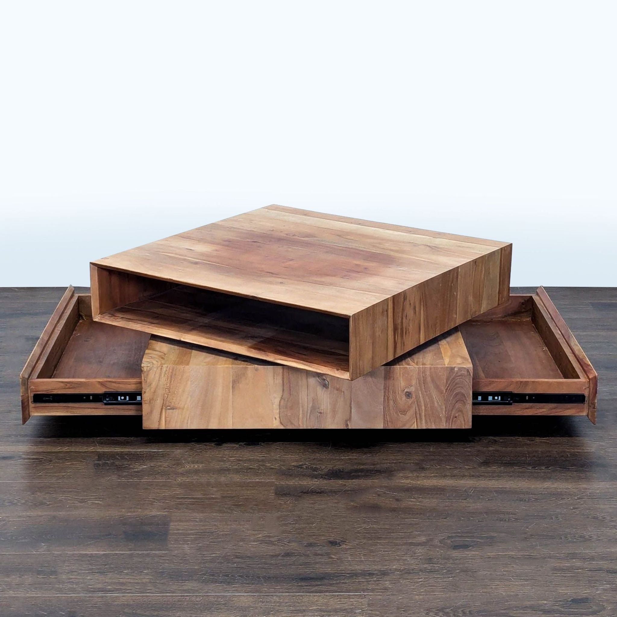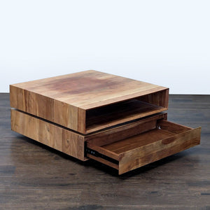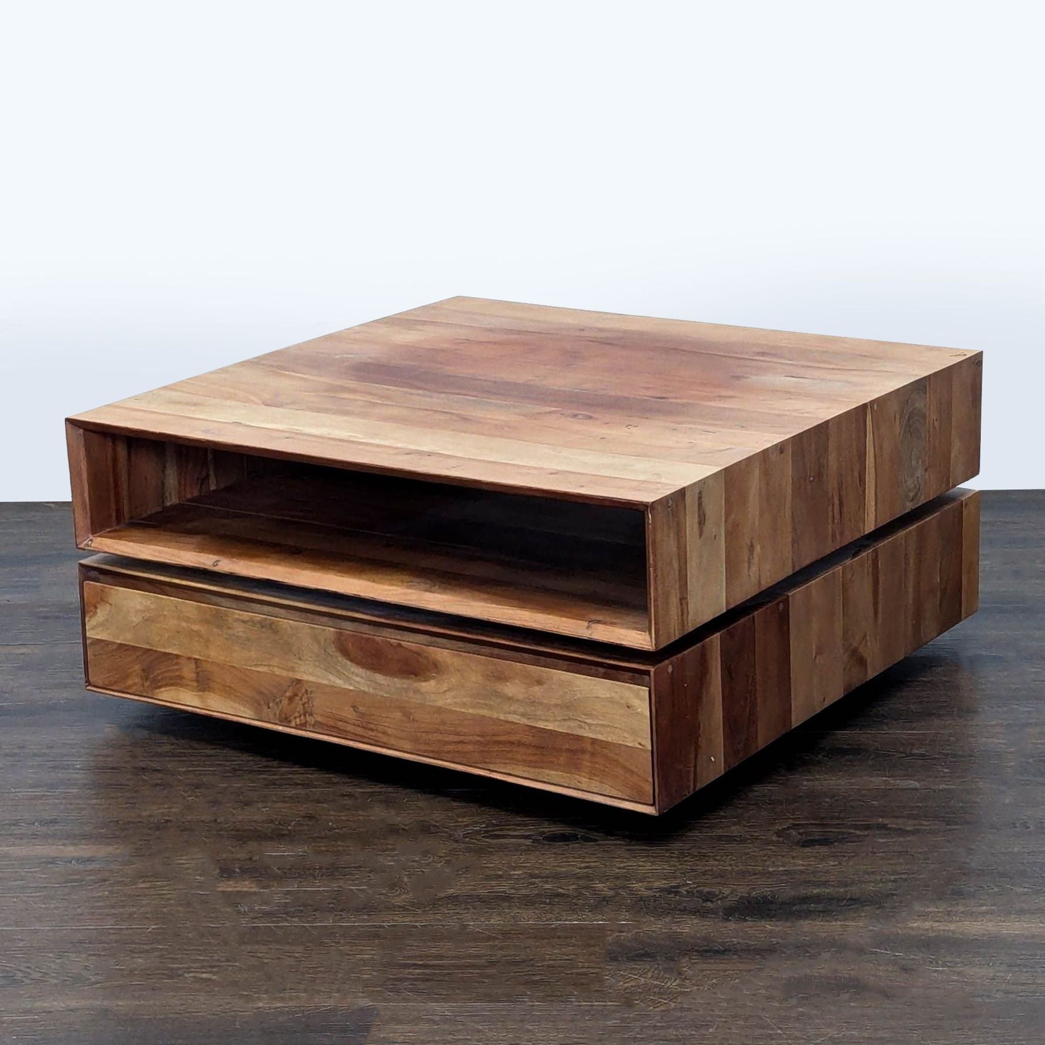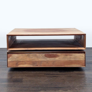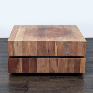 This table is made from engineered wood with an Acacia veneer.