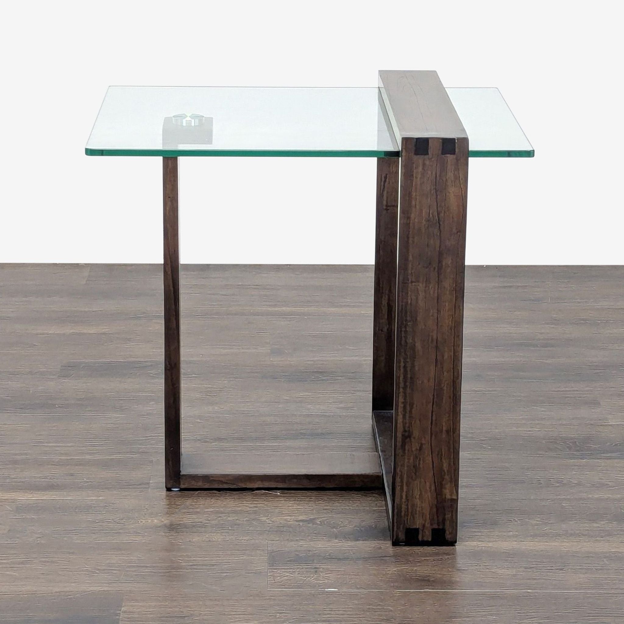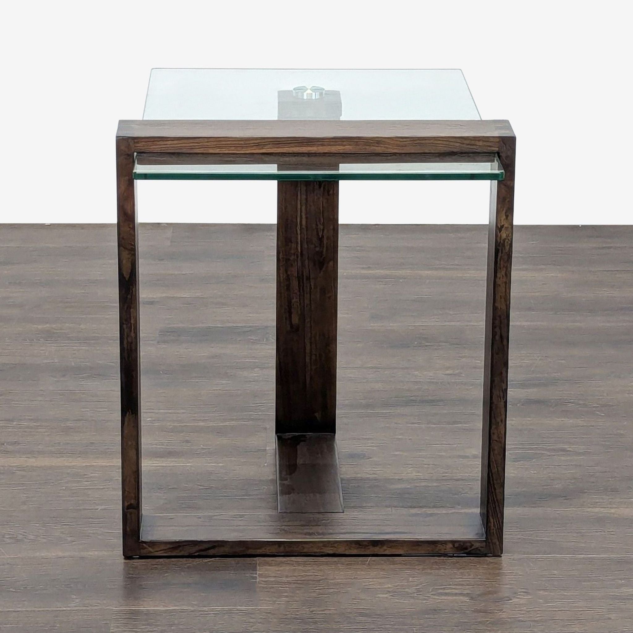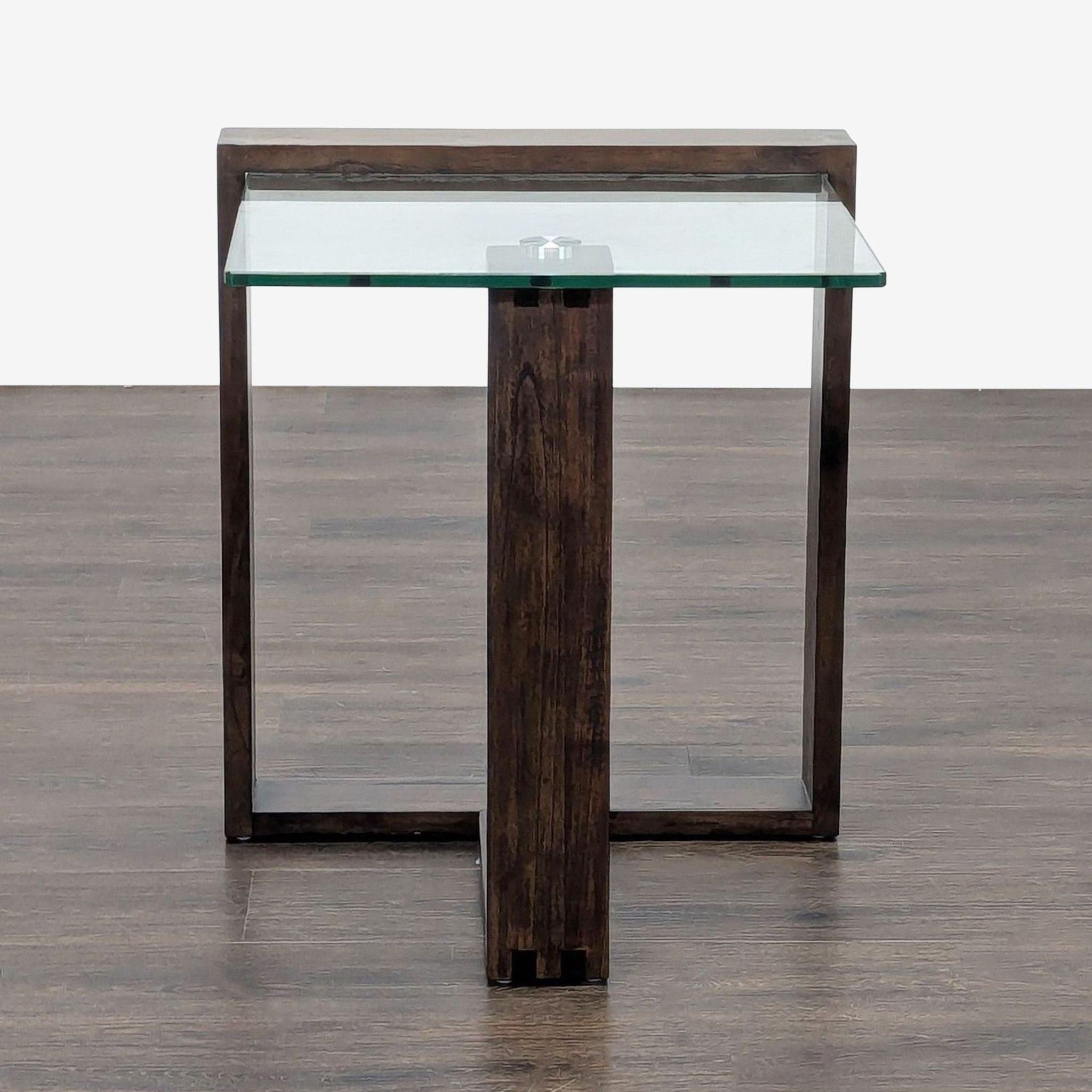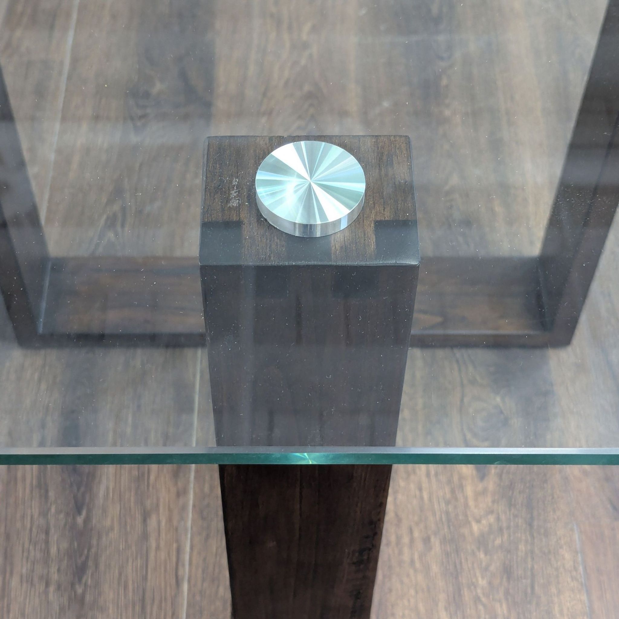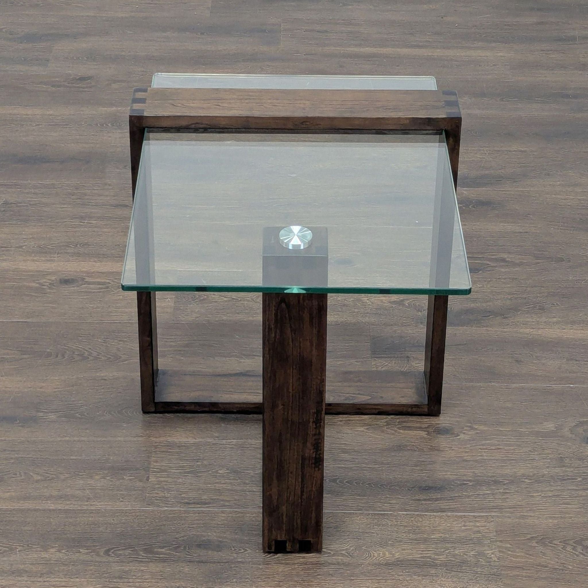 Crafted with a mindi wood frame and a glass top