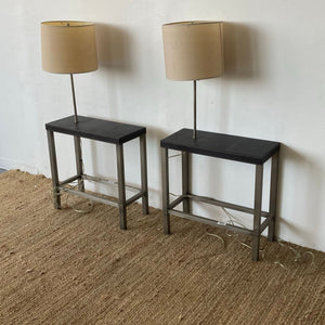• Table Size: 11" W x 25" D x 25" H. • Lamp: 25.5" H with a 13" wide shade. • Total furniture height with the table is 50.5"