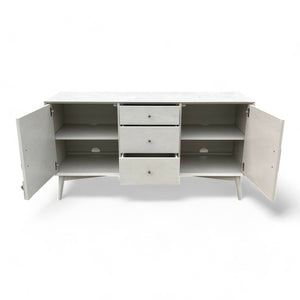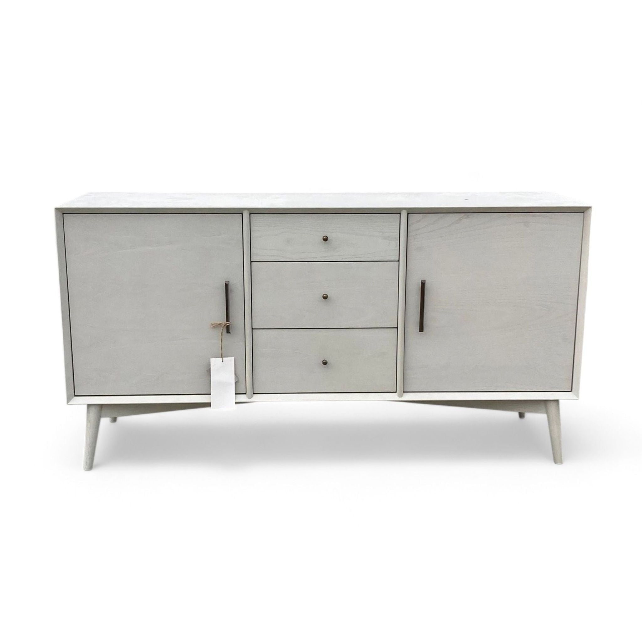 Three drawers, each cabinet has one adjustable shelf *** West Elm Mid Century Media Console (57"") color: Pebble