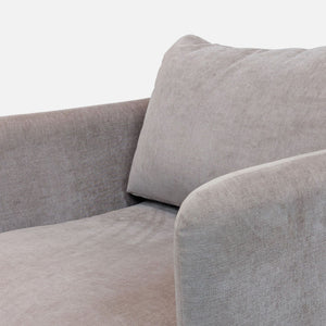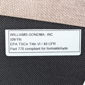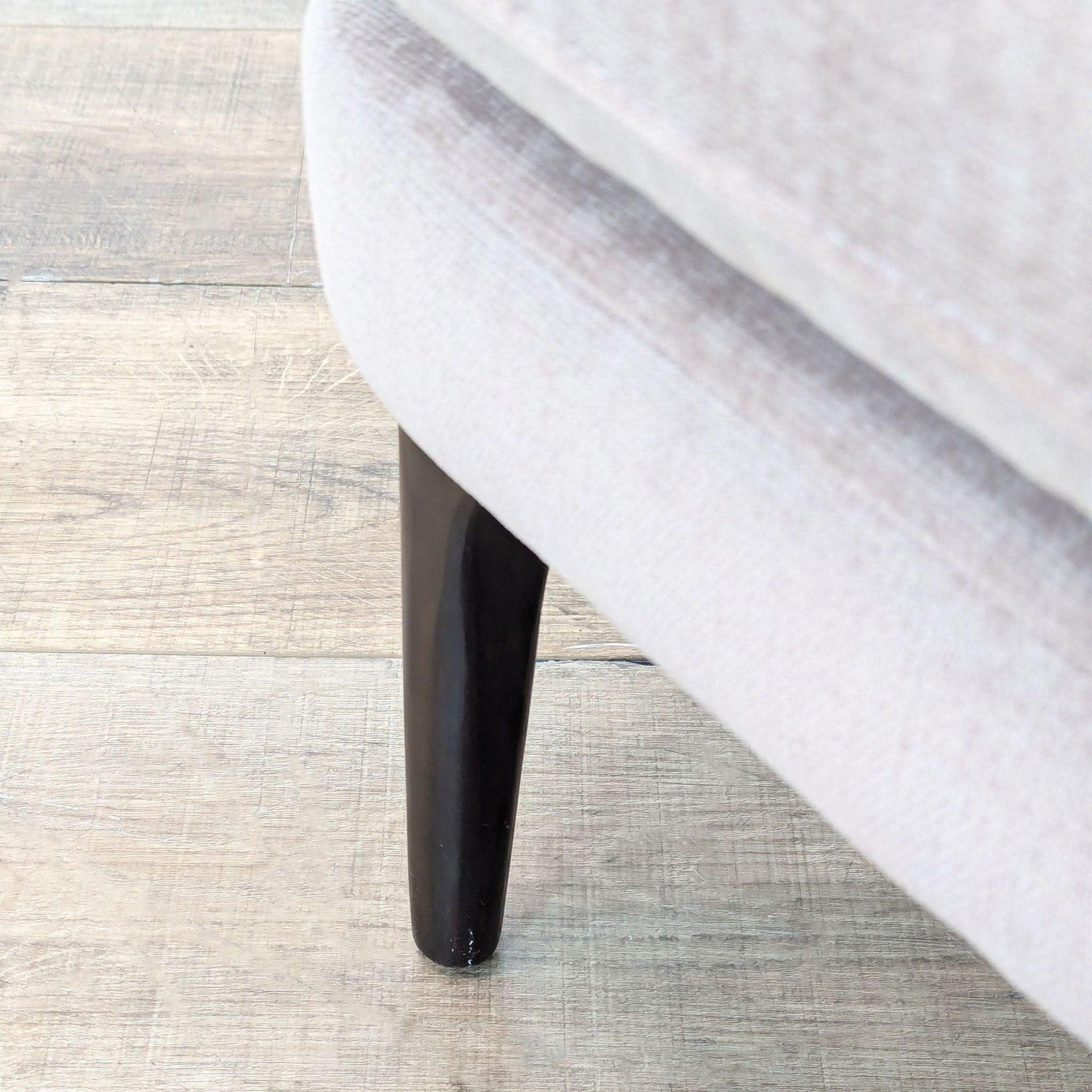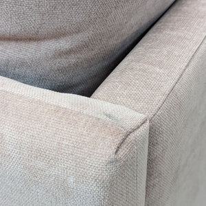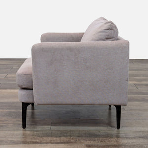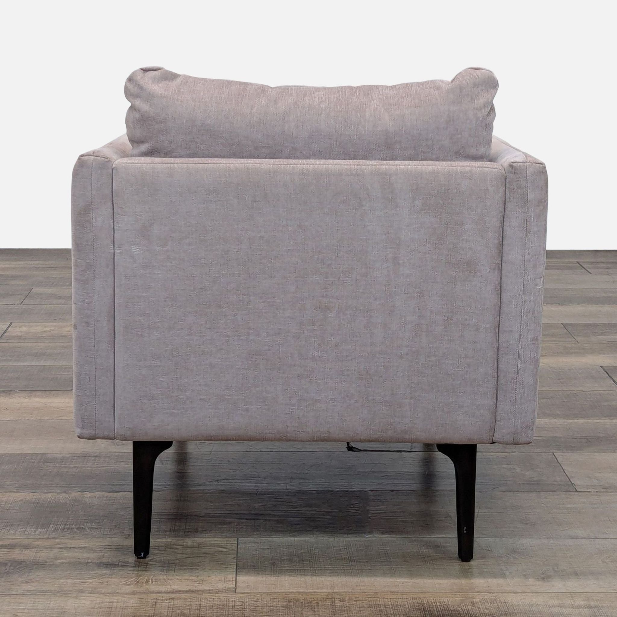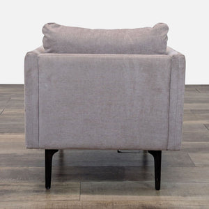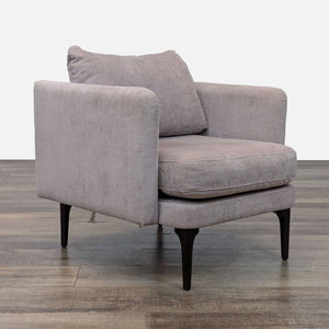 The West Elm Auburn for Williams Sanoma lounge chair is upholstered in twill fabric with solid wood legs.