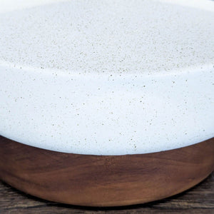 This West Elm table lamp features a clean, modern design with a smooth white ceramic body and a sturdy wooden base. The simple white drum shade adds a soft touch, making it perfect for bedside tables, desks, or living rooms. Works great for both ambient and task lighting. Stylish and easy to fit in any space.