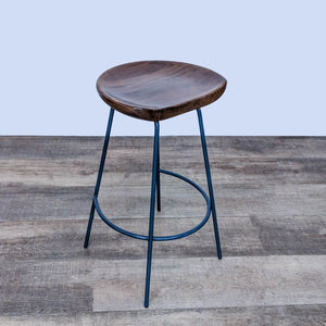 Alden Solid Wood Bucket Seat Counter Stool On Black Steel Base