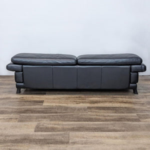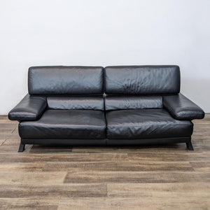 Designer Italian Brand Black Leather Low Profile Sofa With Cross Metal Side Frame And Adjustable Head Rests