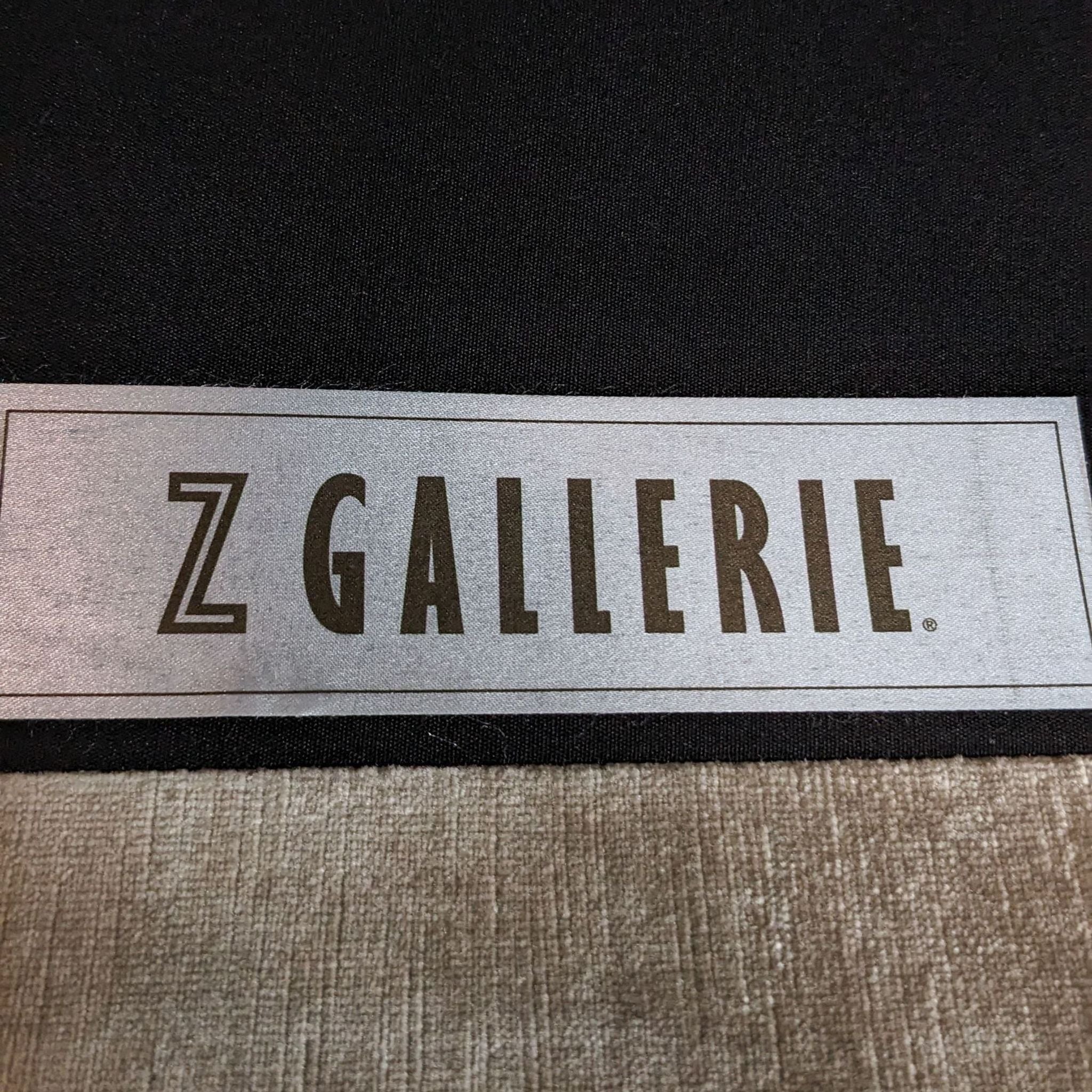 Z Gallerie 3-seat sofa in a neutral, versatile color. This sofa features plush velvet upholstery, offering a soft and inviting feel. The curved armrests and clean lines provide a touch of elegance, making it a stylish addition to any living space. Included are coordinating throw pillows for added comfort and flair. The sofa rests on sturdy wooden legs, ensuring stability and durability.