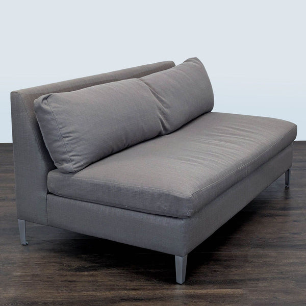 This modular sofa features soft and comfortable padded velvet fabric, built-in sinuous springs, and high-resilience foam seats. Each section can detach to customize each seat.