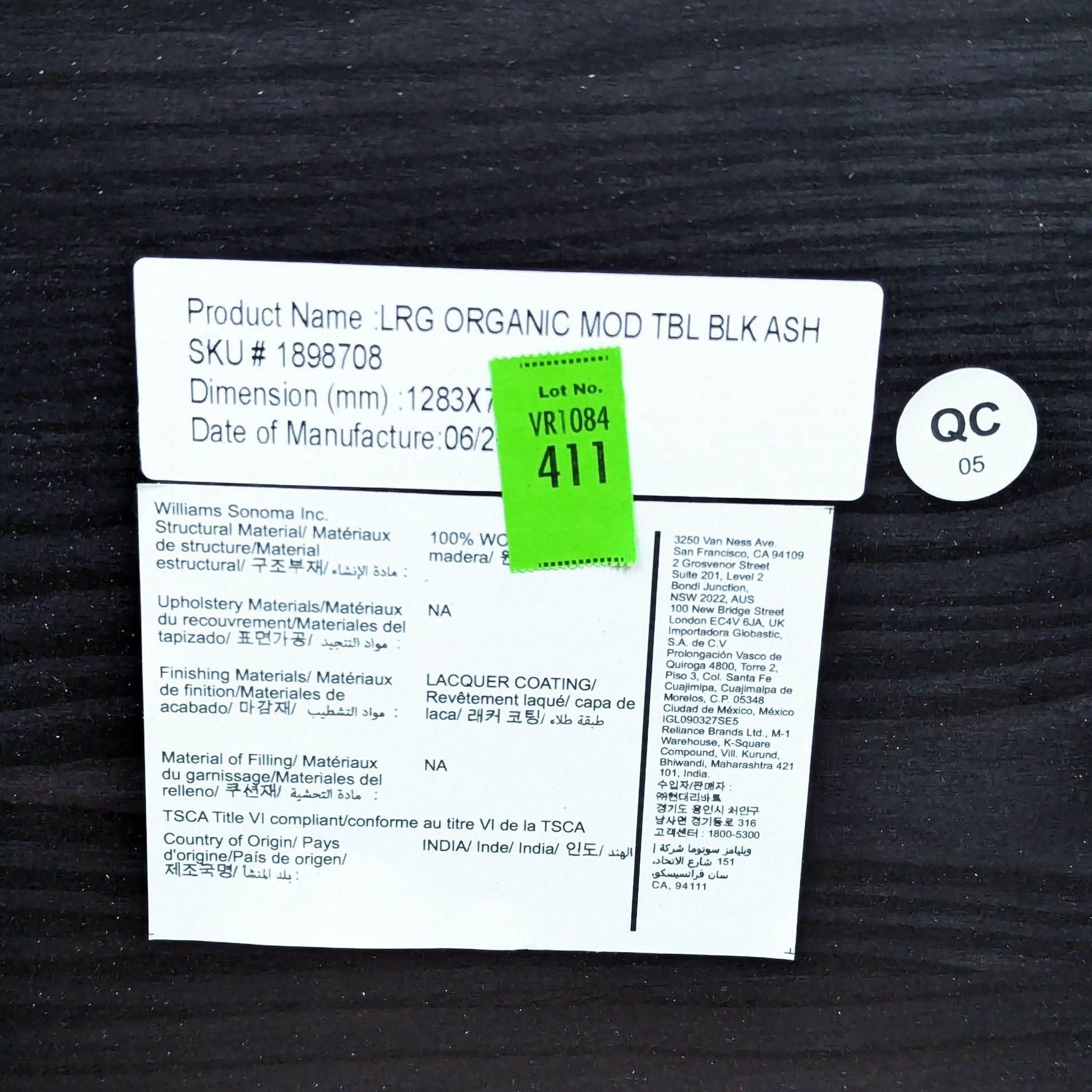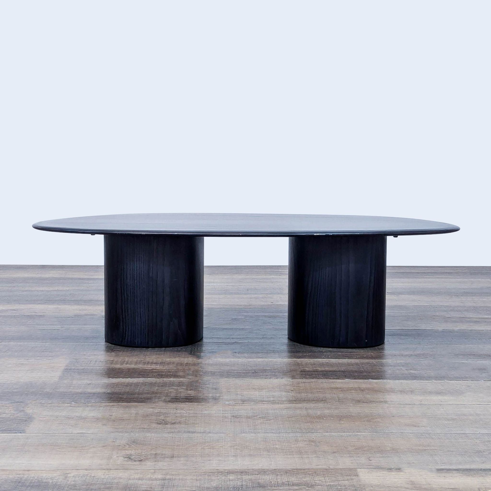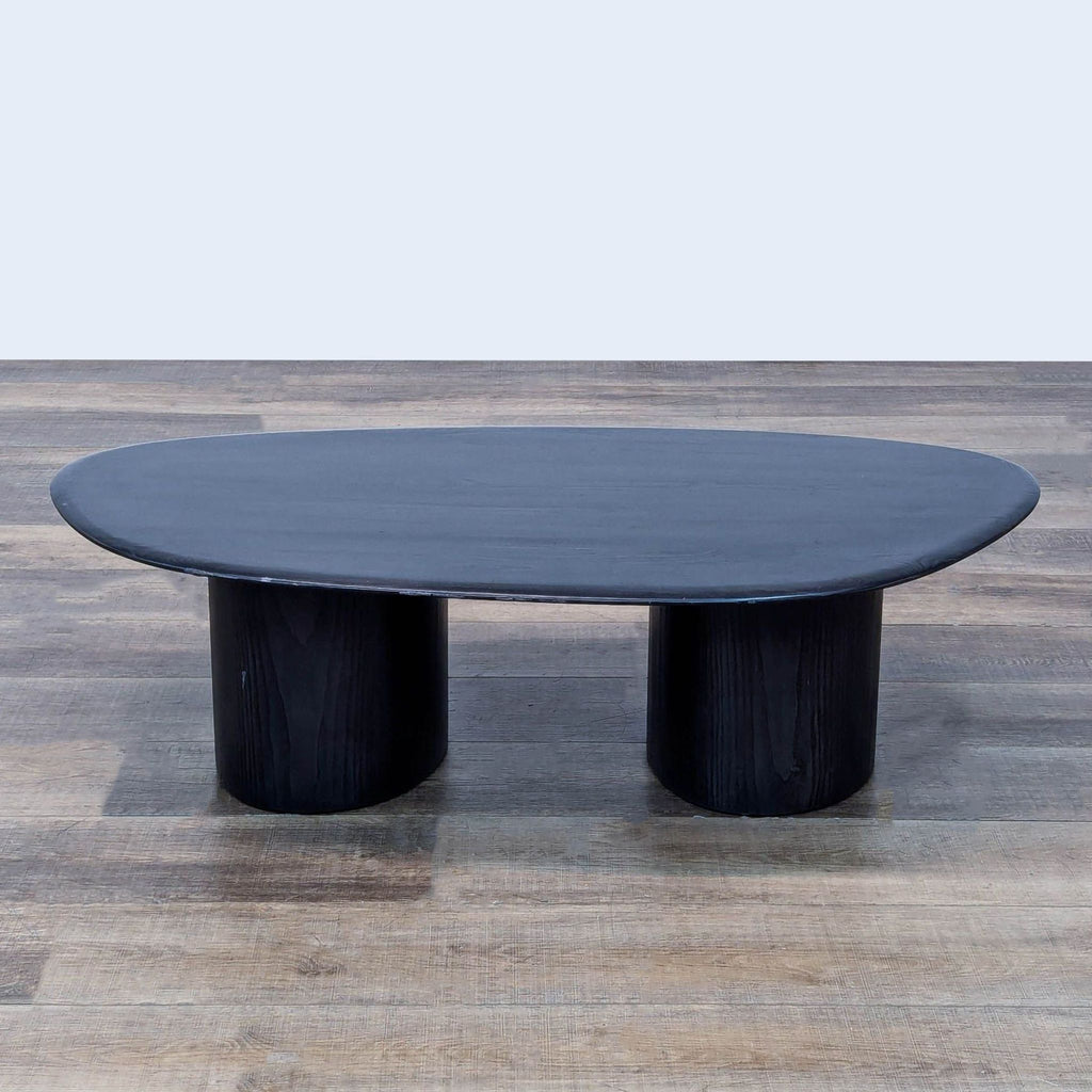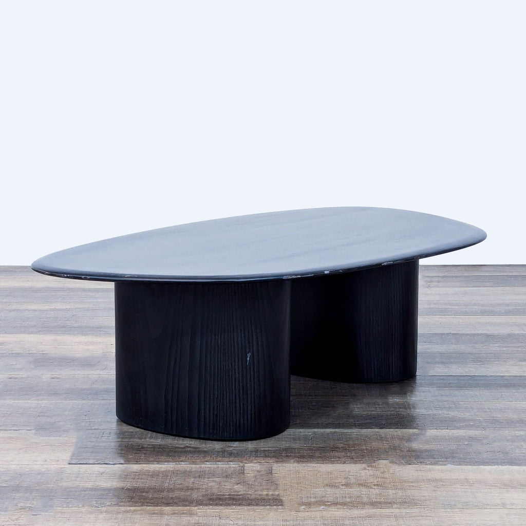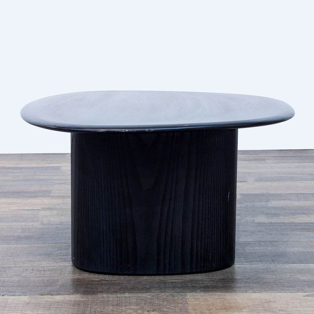 Solid ash wood top covered in a black finish.