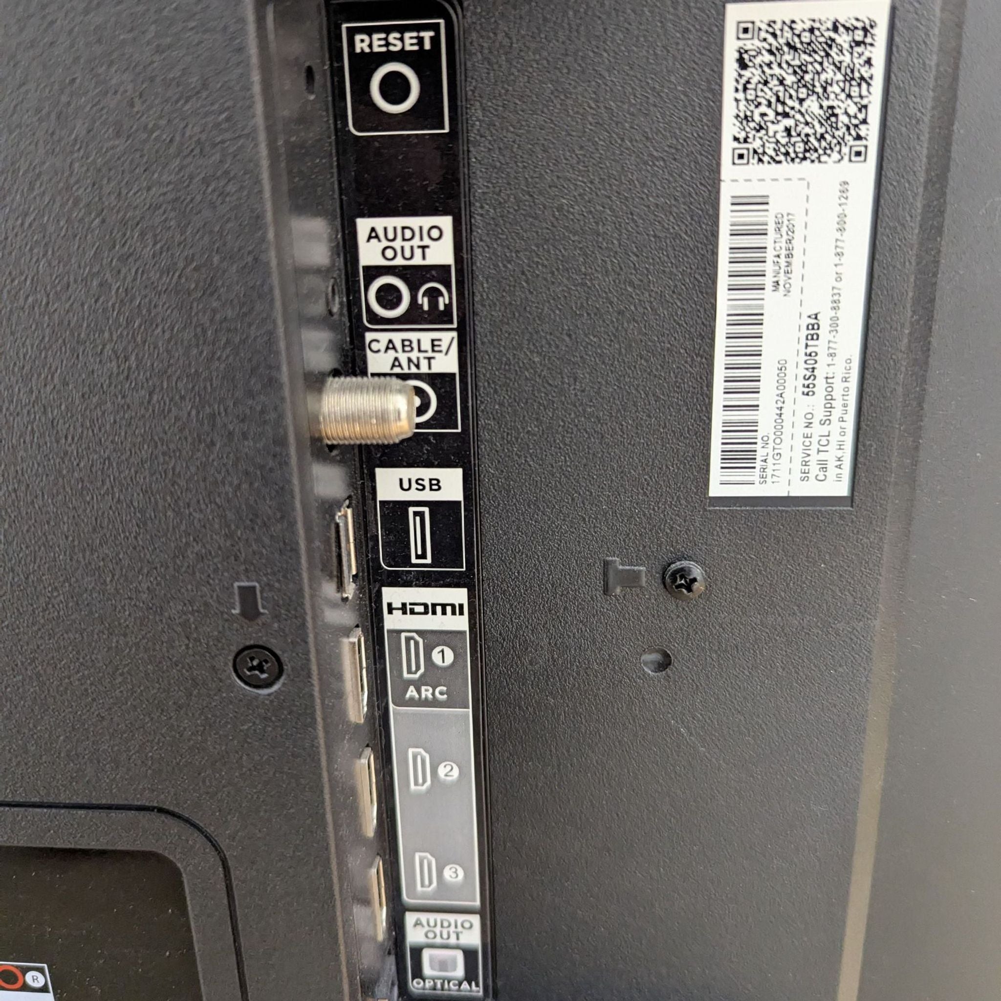 This TCL 40-inch Roku Smart TV is in great condition and offers clear HD picture quality. It features built-in Roku for easy access to popular streaming apps like Netflix and Prime Video. The TV has multiple HDMI ports for connecting devices such as game consoles and streaming sticks. The sleek design fits well in any room, and the TV stands are sturdy. Perfect for watching live TV, movies, and more.