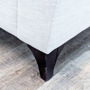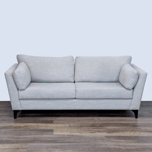 Elevate your space with this modern gray loveseat. Its sleek design and soft cushions offer comfort and style.