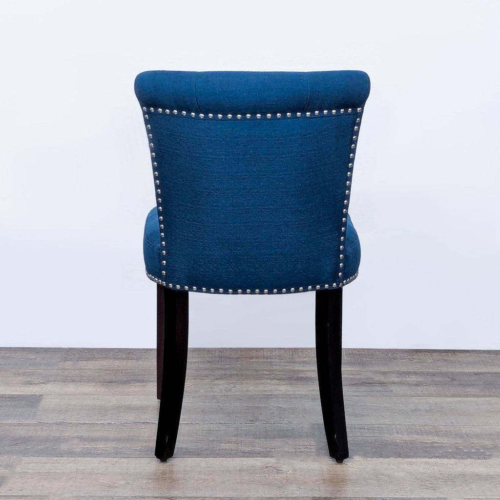 Accent chair with solid wood legs, button tufted back and nailhead trim.