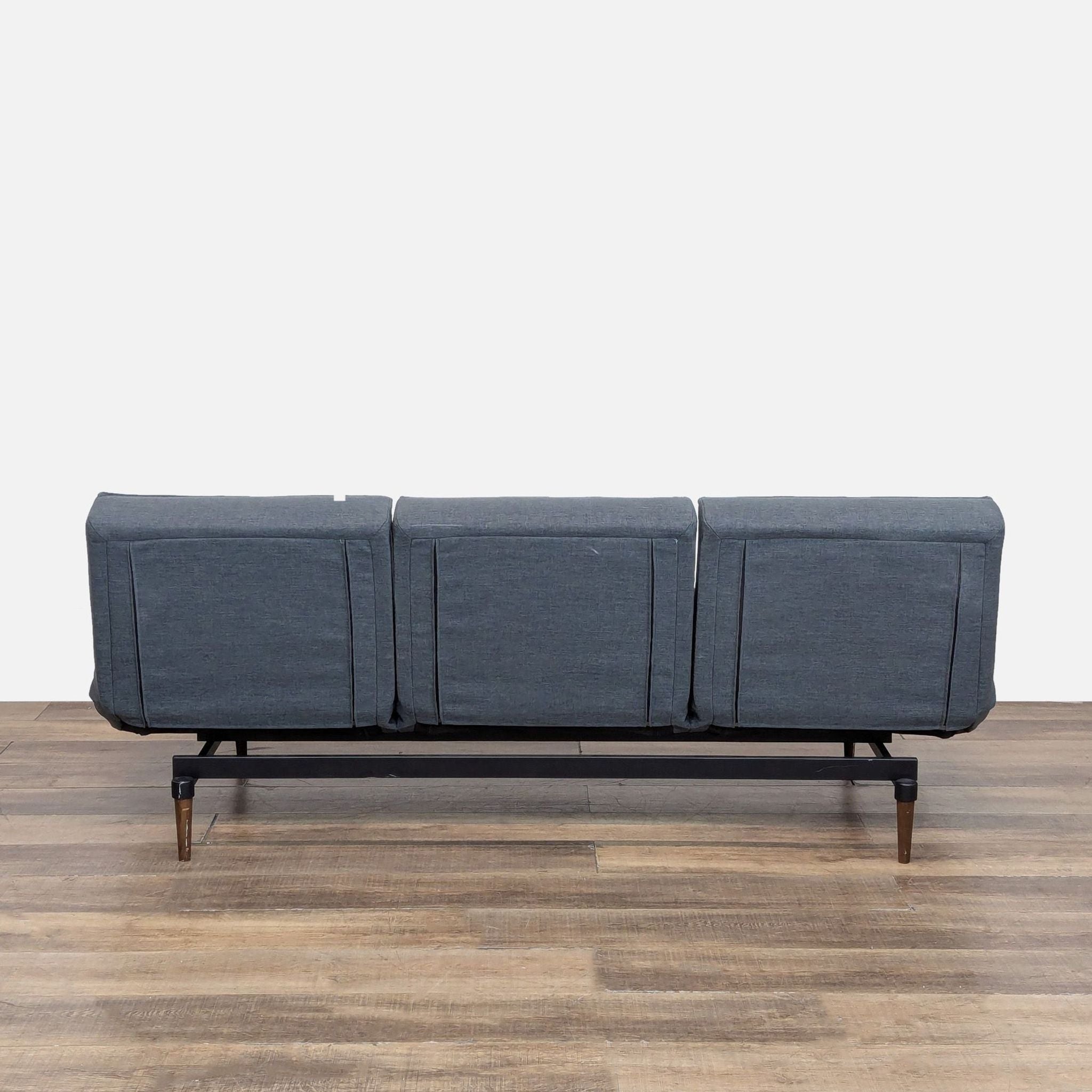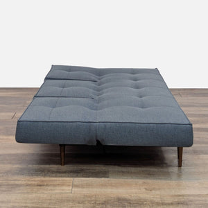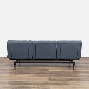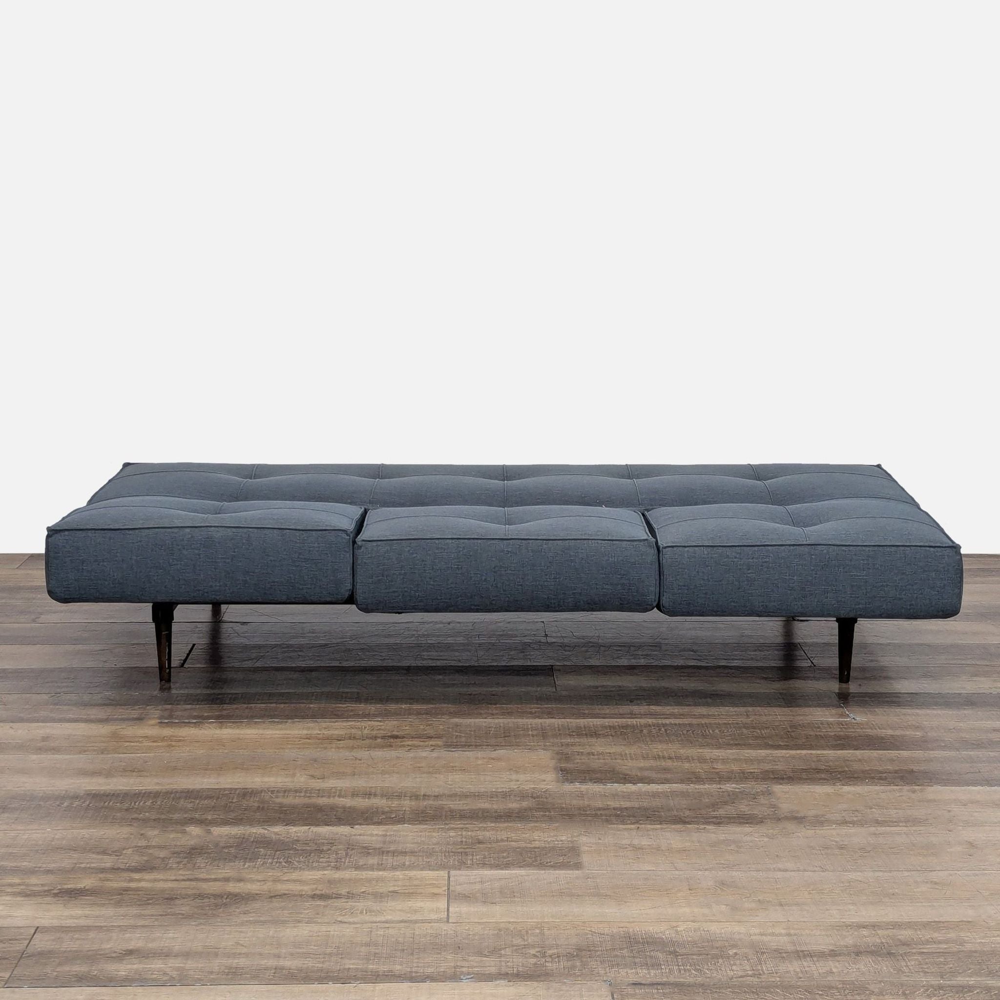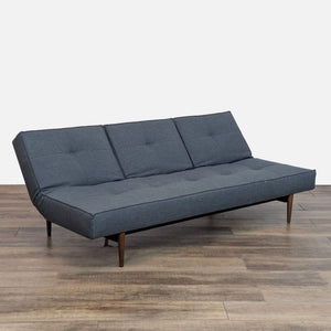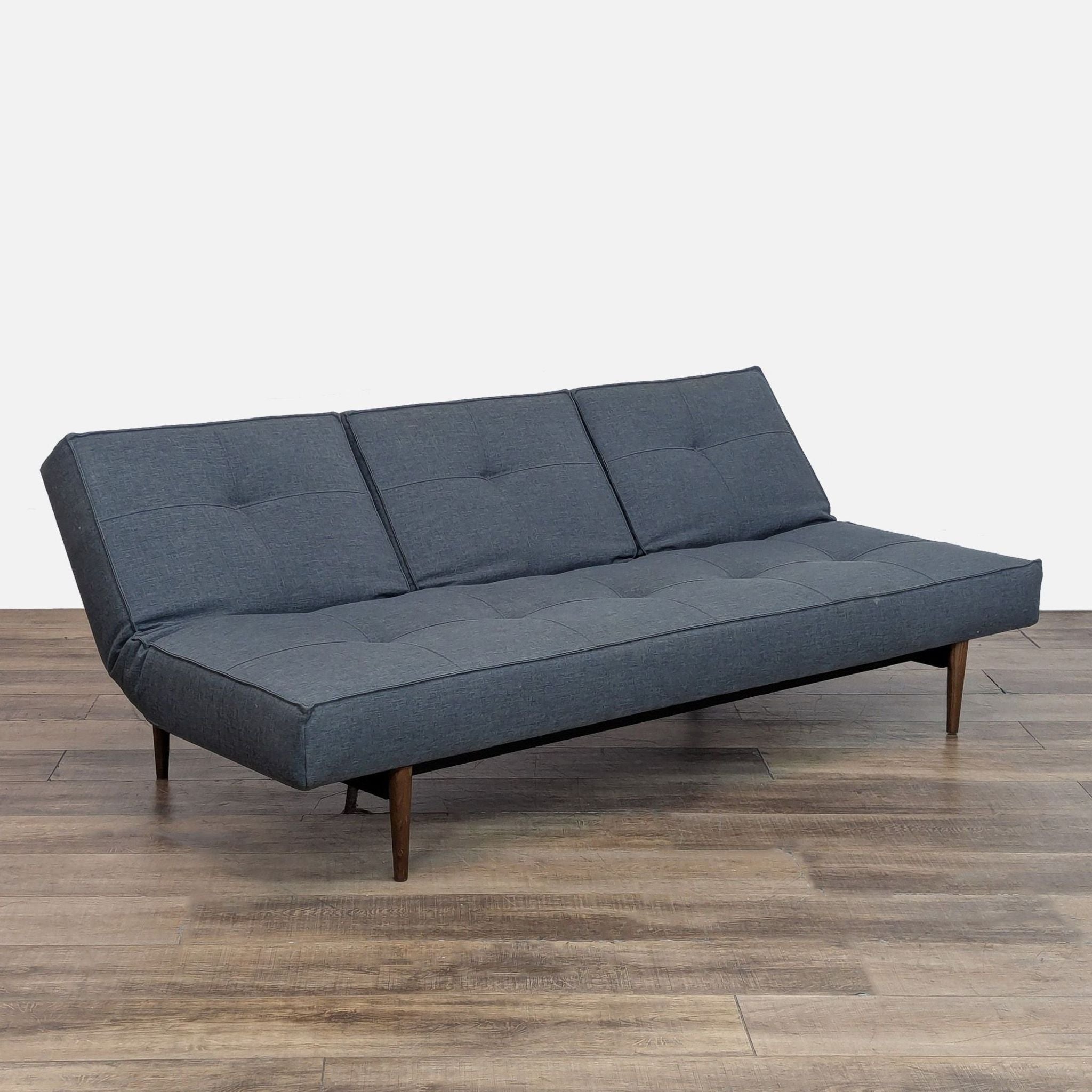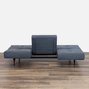 High density foam is upholstered with blind tufted detail cushions and tapered legs for a transitional + mid century inspired look. Three independent back mechanisms lift and click to recline or become a flat surface.