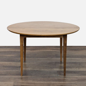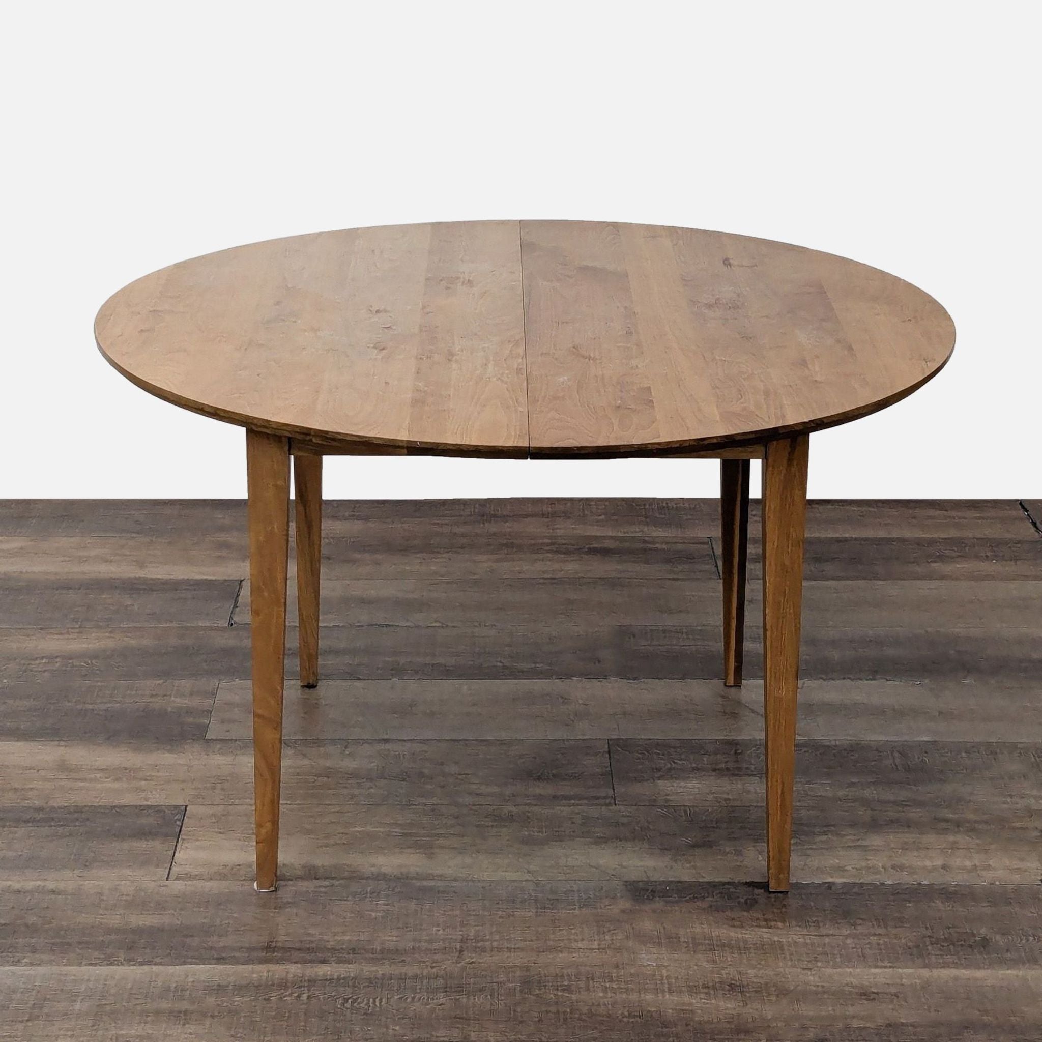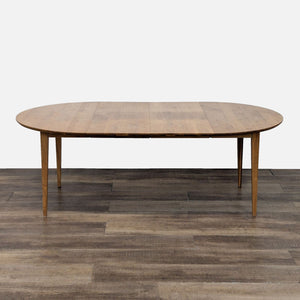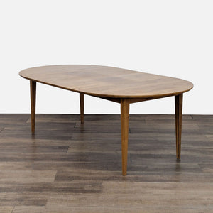 Walnut table with tapered legs. With the included 2 leaves, the table extends to 84 inches.