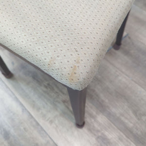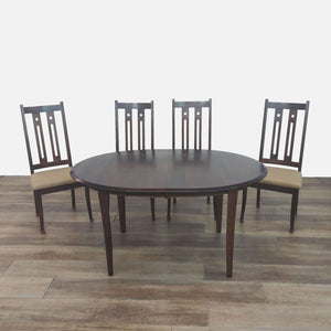 This dining set includes a mahogany dining table with four matching chairs with upholstered seats.
