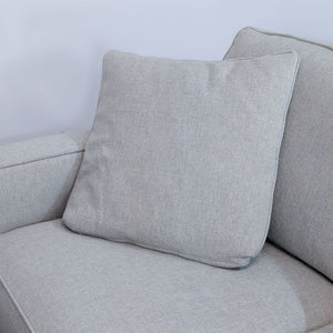 Features track arms and sink in comfort cushions. Upholstered in Summer Linen fabric.