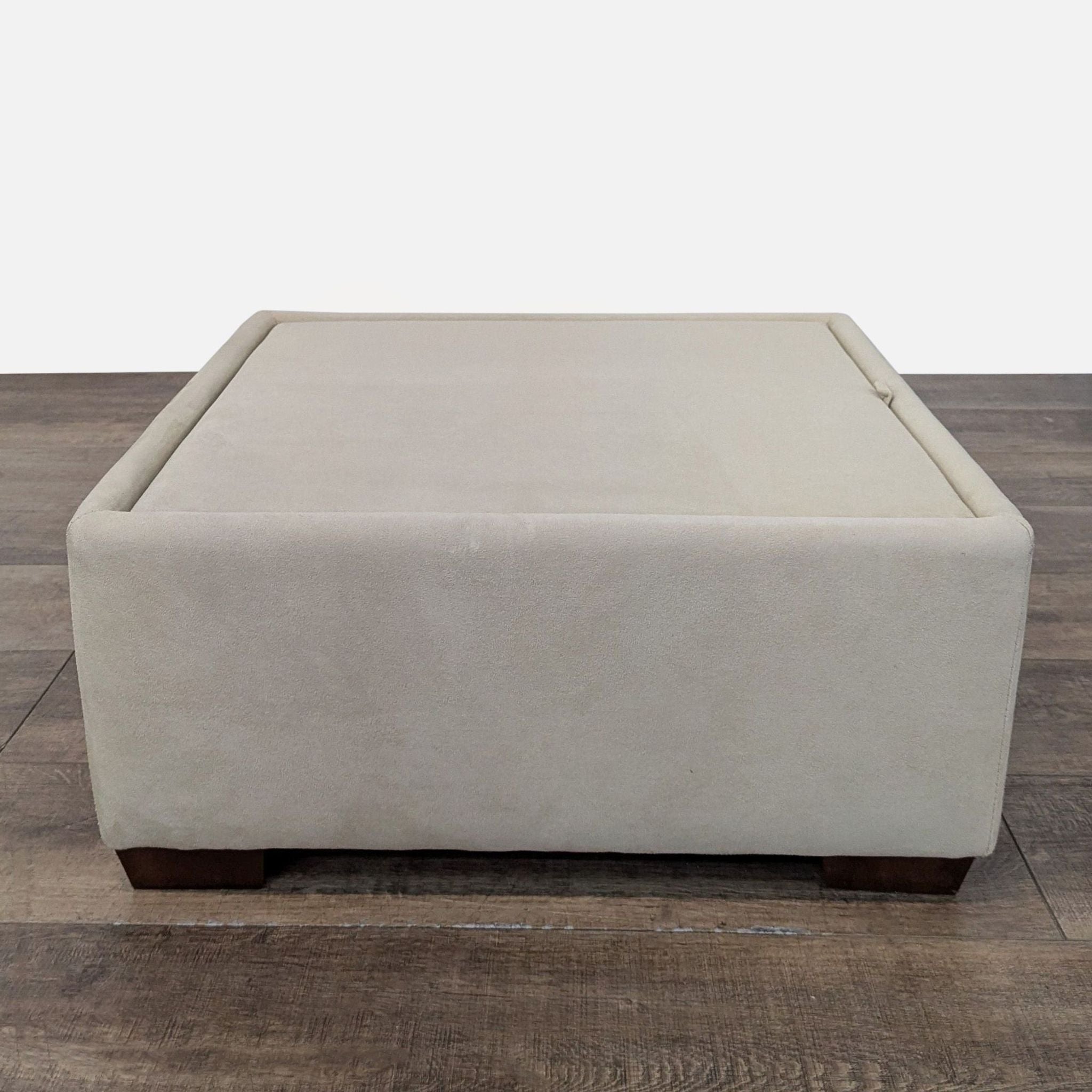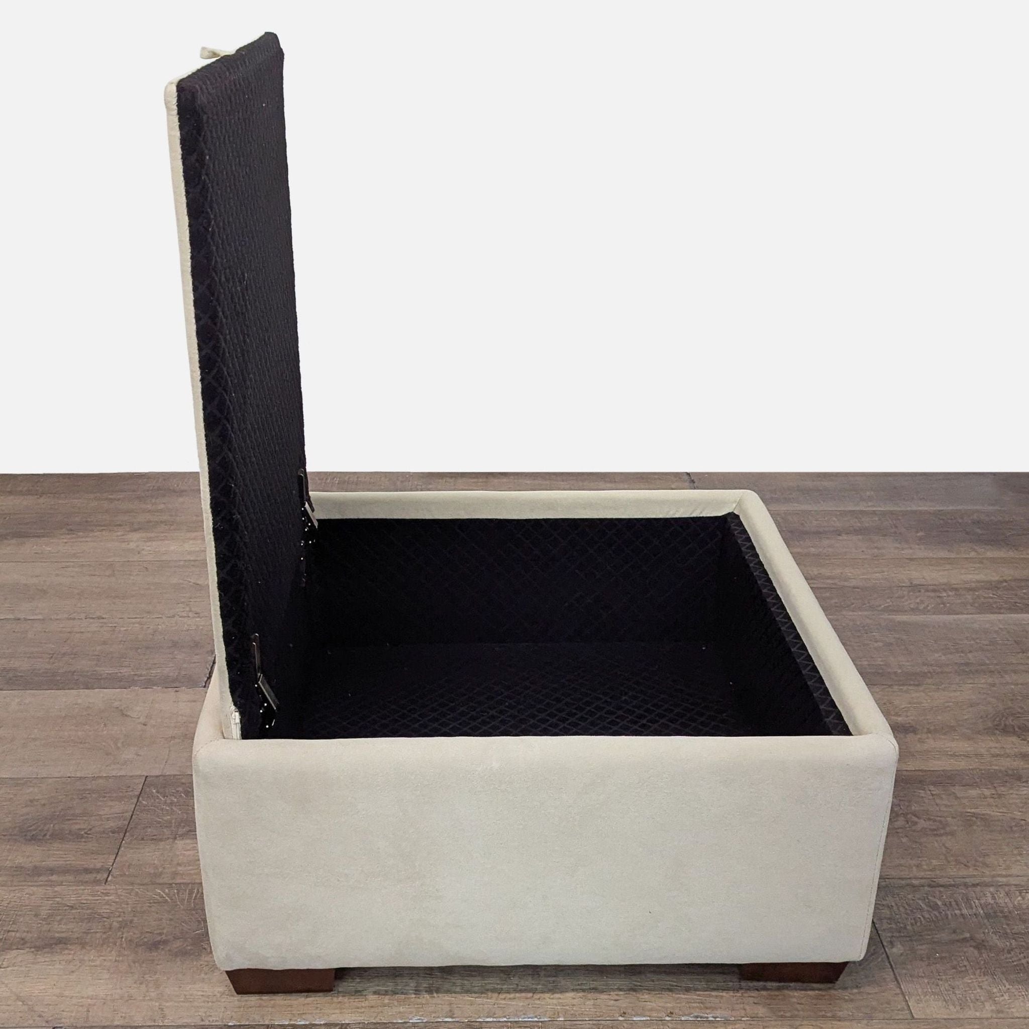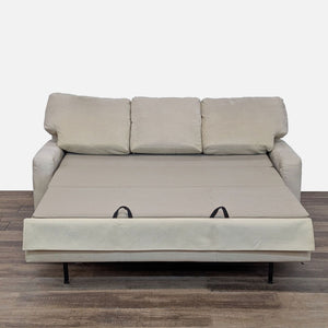 This sofa features a chaise with storage and pull out queen sleeper. The upholstery is Bella Suede Easy Care.