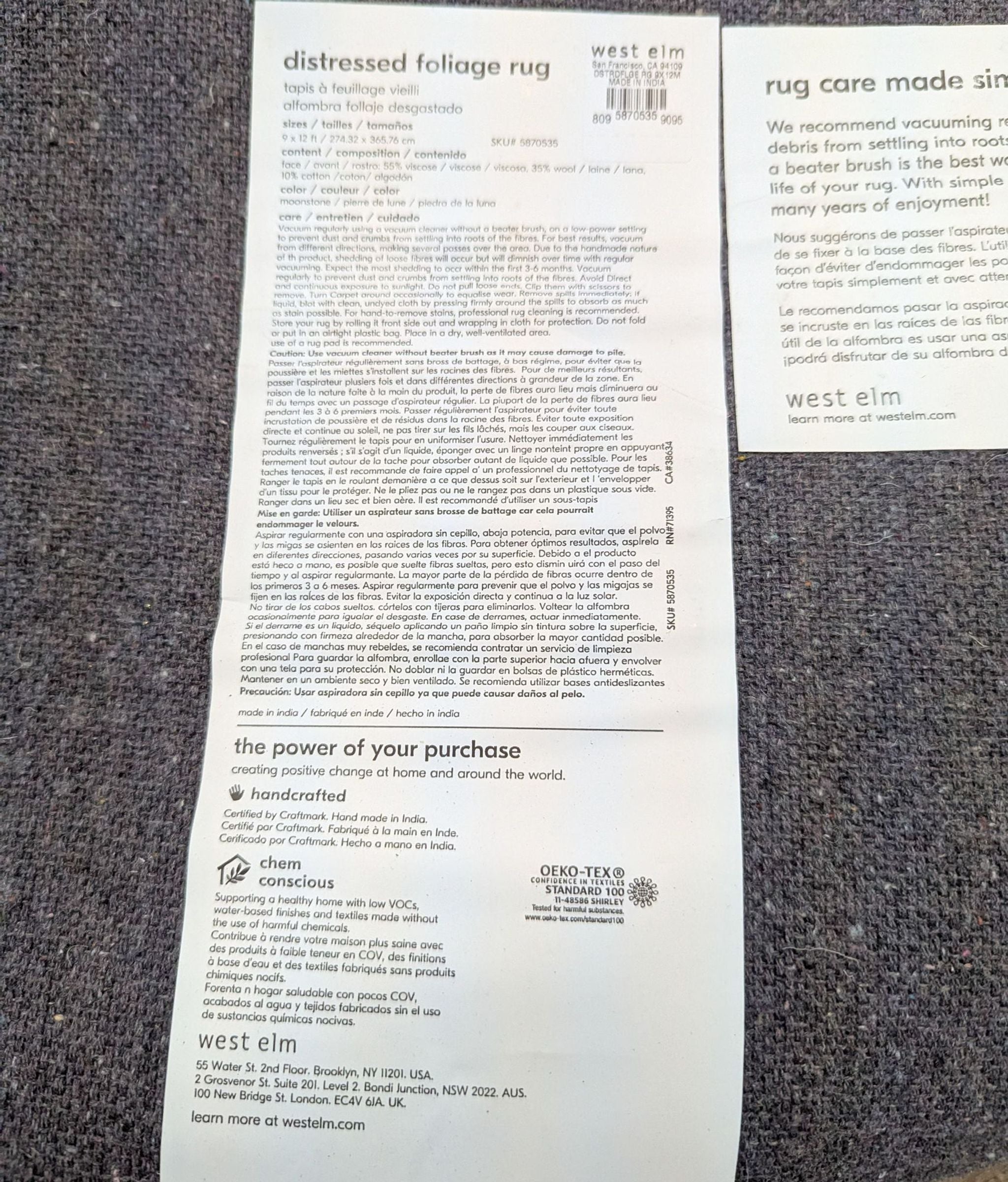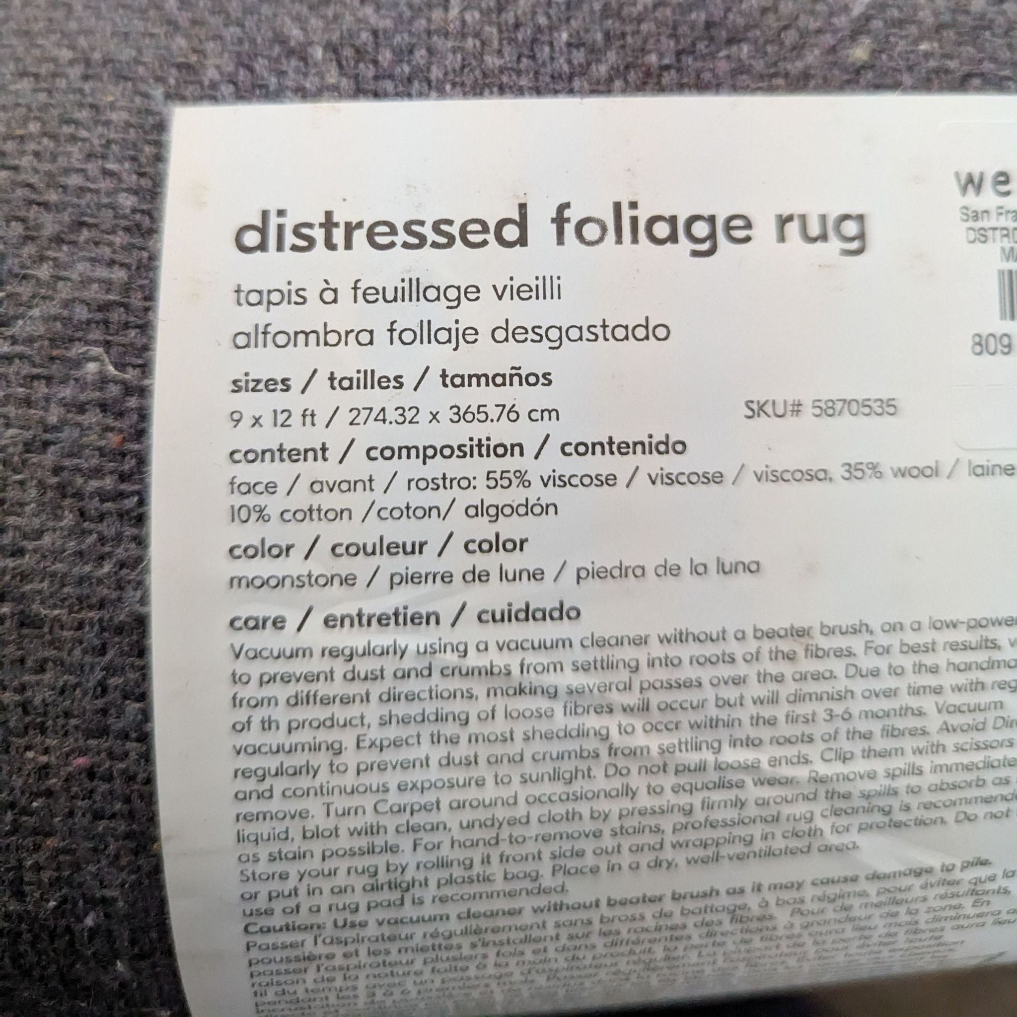 Hand loomed to create a subtly distressed look. The tonal pattern resembles softly cascading vines.