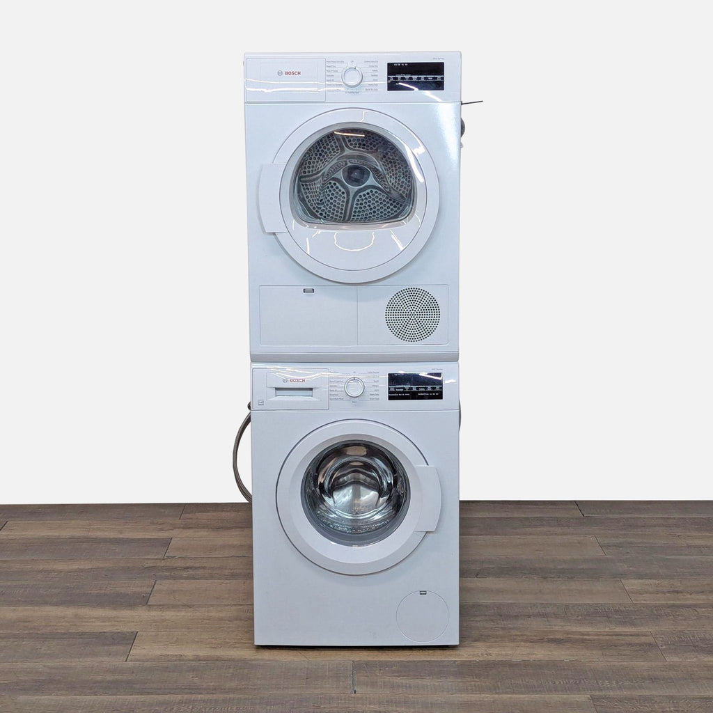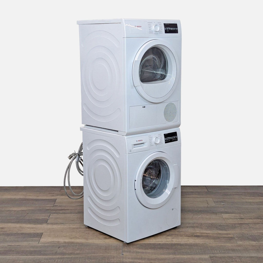 Upgrade your laundry routine with this Bosch stackable washer and dryer set. Compact and modern, it fits perfectly in any space. Enjoy powerful cleaning and quiet operation with trusted Bosch quality. Ideal for efficient and stylish home laundry solutions.