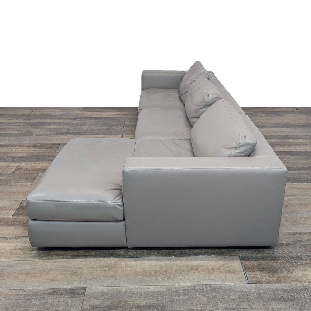 The Reid Sectional with Chaise offers plush, sink-right-in support, thanks to down- and feather-wrapped foam cushions and down- and feather-filled back cushions.