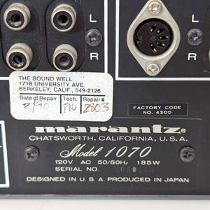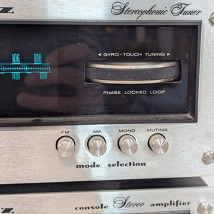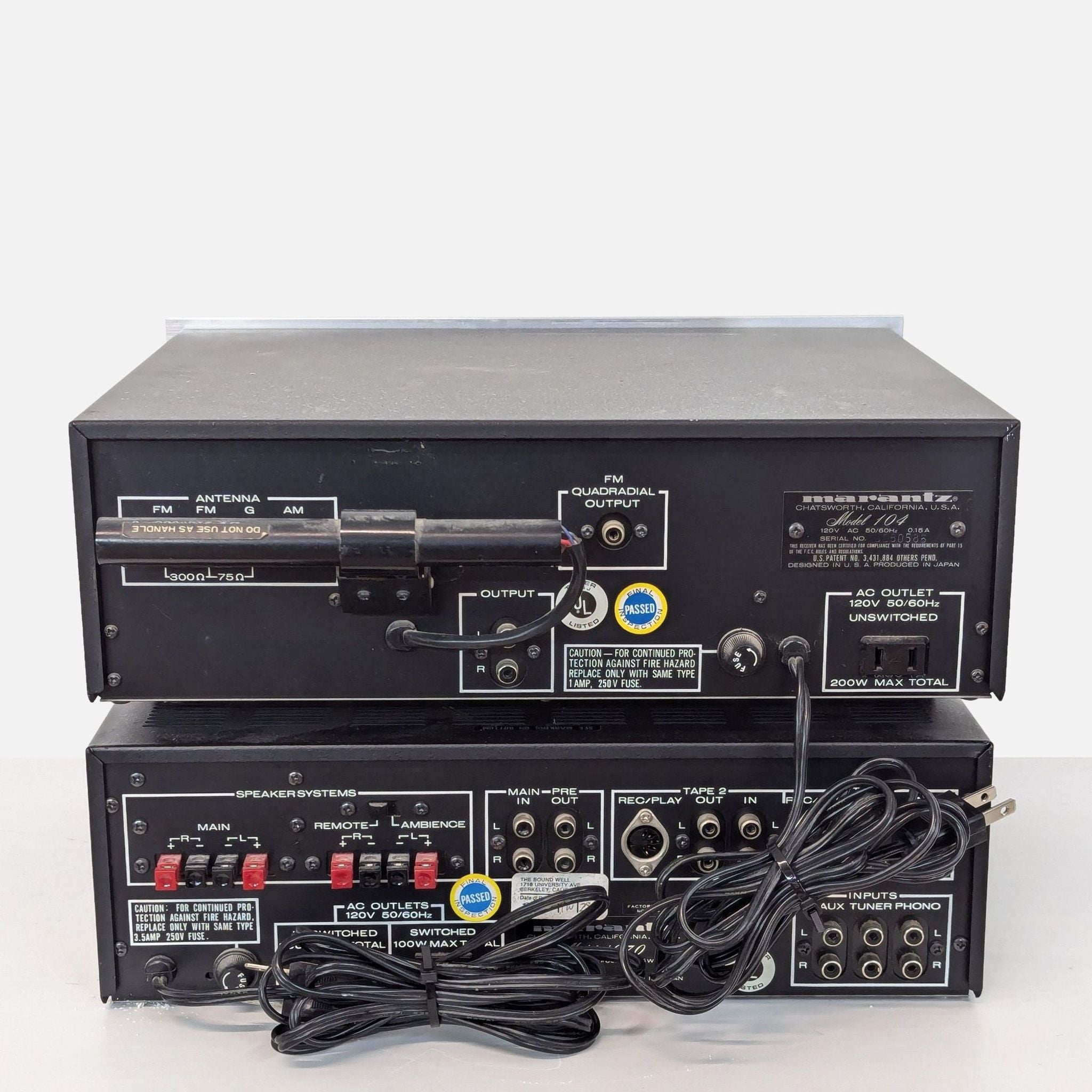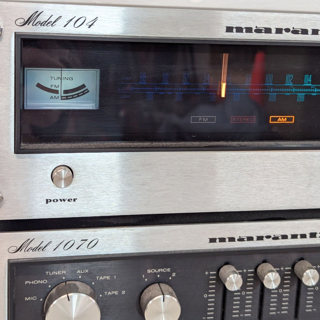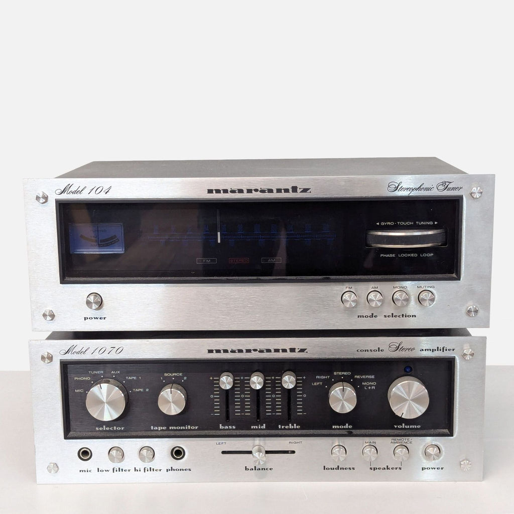 Experience exceptional sound with this vintage Marantz Model 104 Tuner and 1070 Amplifier set. Known for its reliable performance, this combo offers precise tuning and powerful audio output. It features classic design elements, durable build, and intuitive controls for a superior listening experience. Perfect for audio enthusiasts who appreciate quality and style. Please note cassette player does not seem to be working properly - moving too fast.