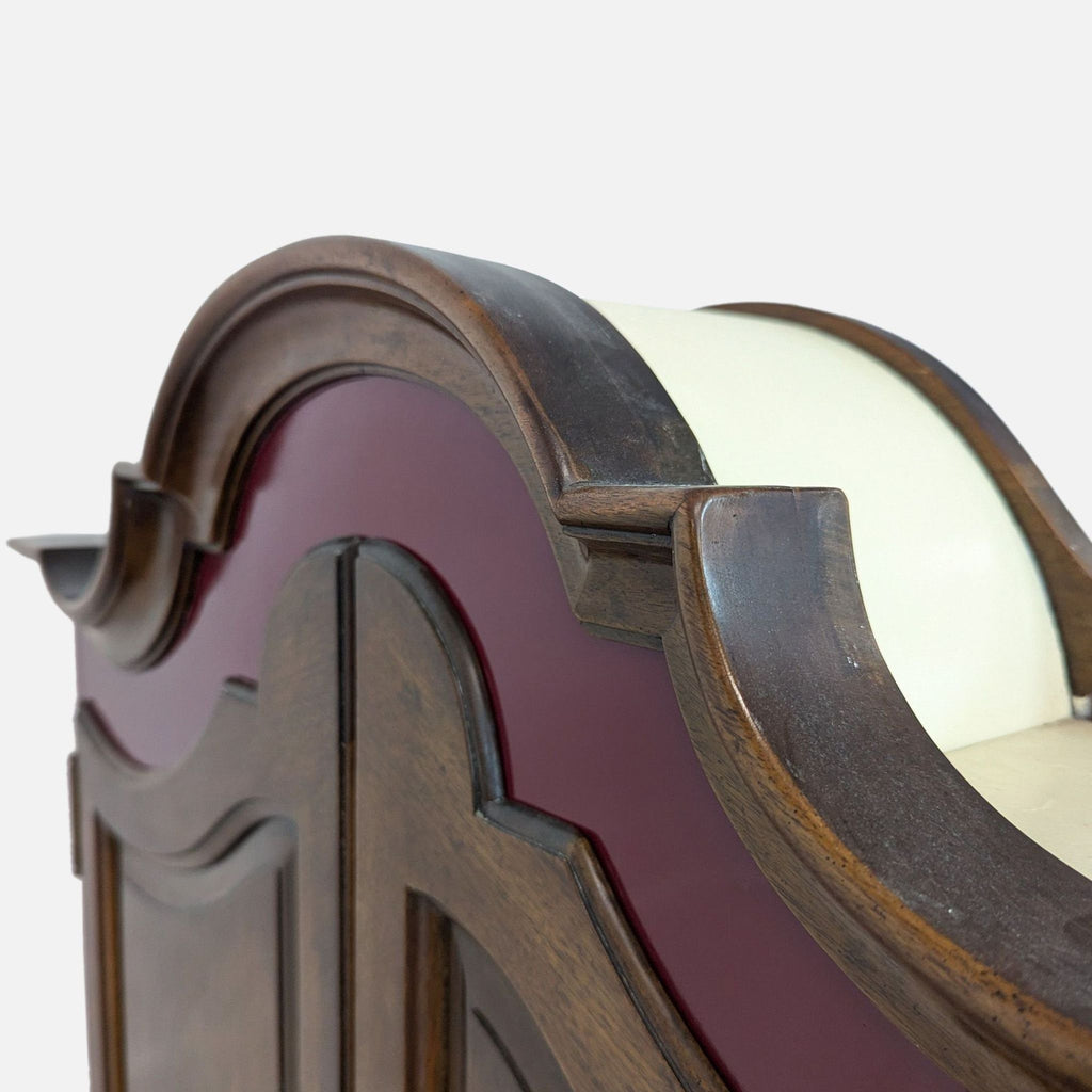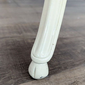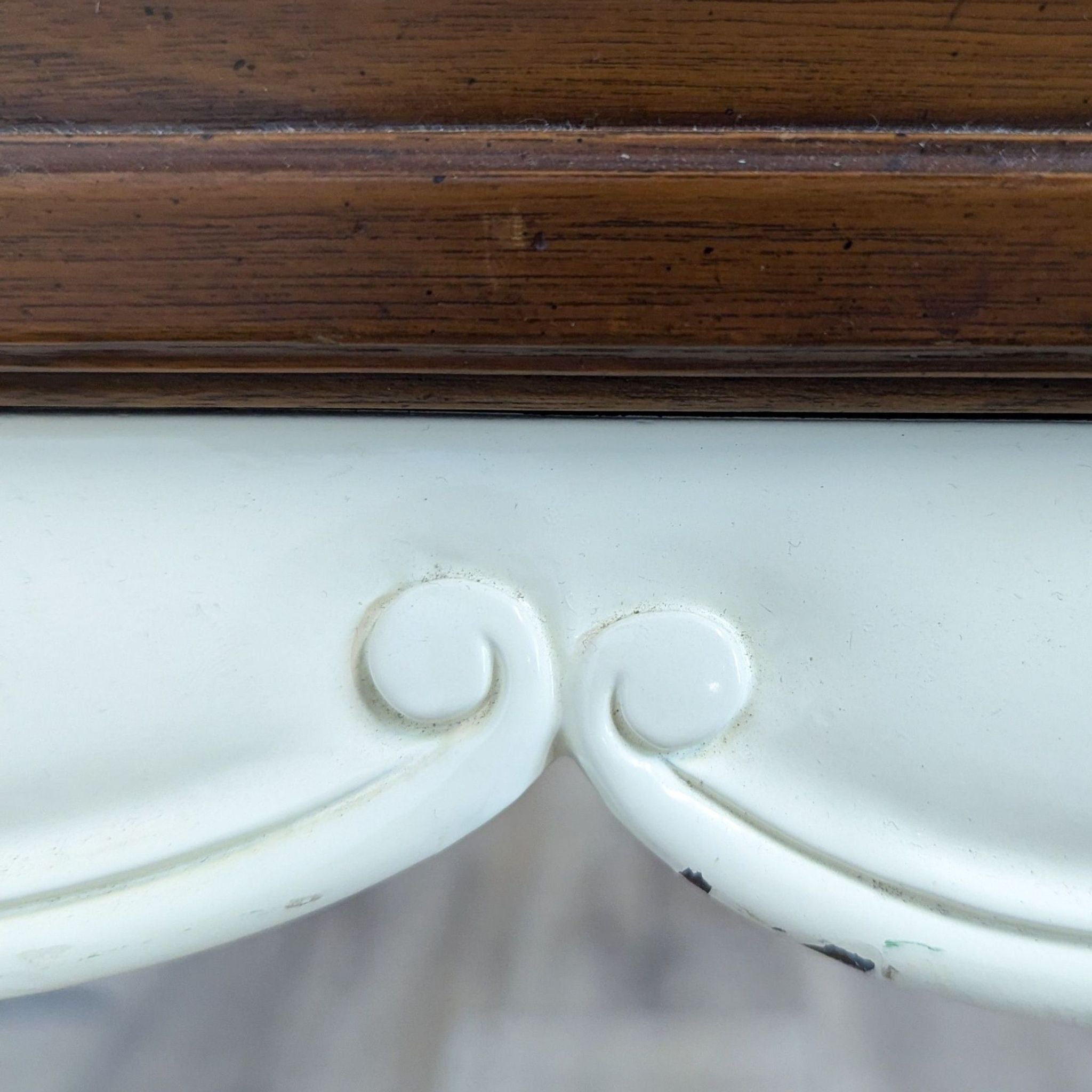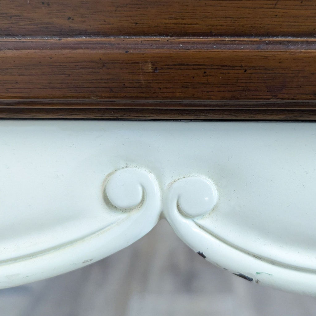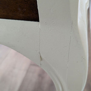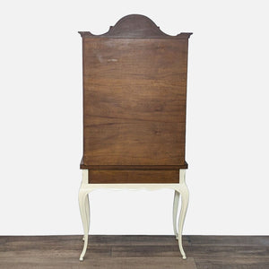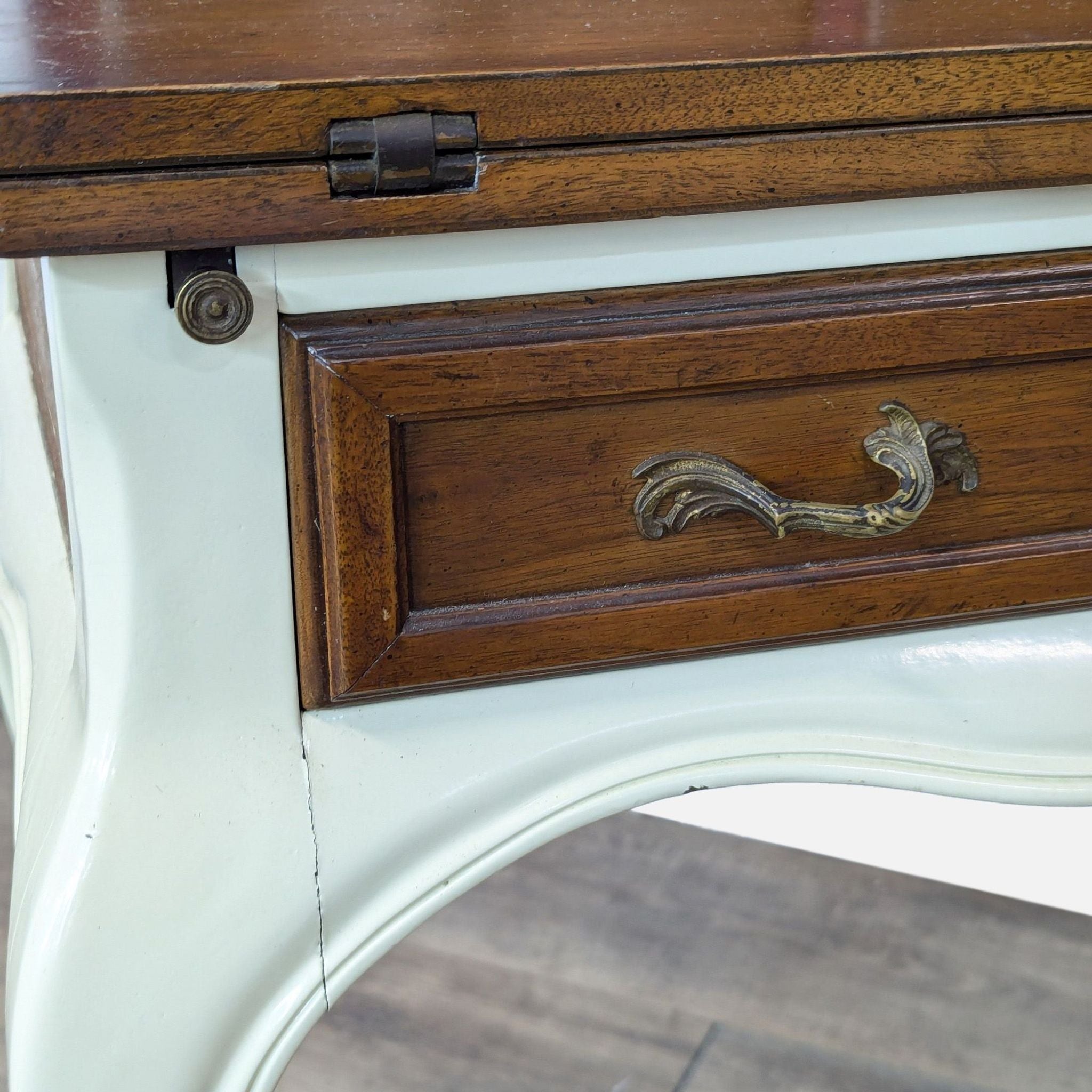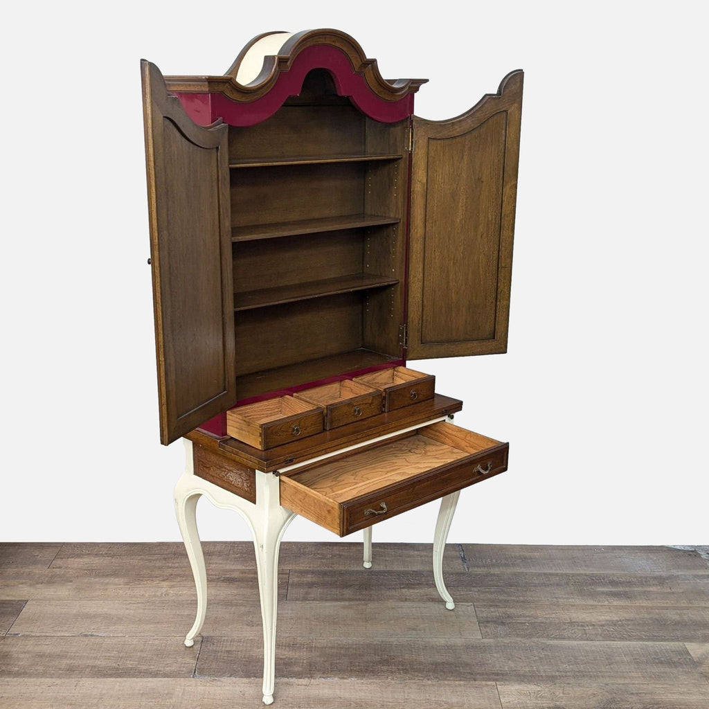 This Bodart desk combines vintage charm with practical design. Featuring a wooden cabinet top with ample storage and classic brass handles, it sits on elegant curved legs painted in a clean ivory finish.