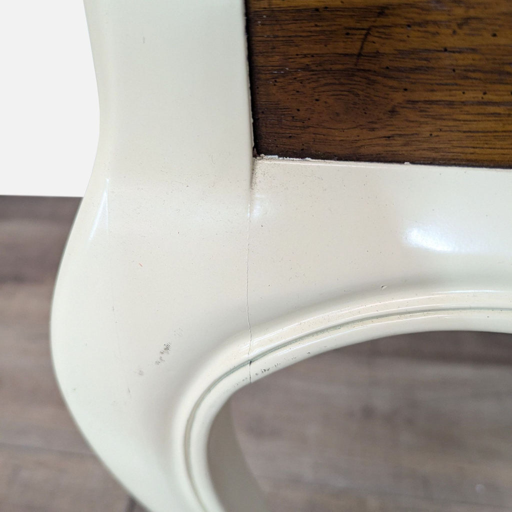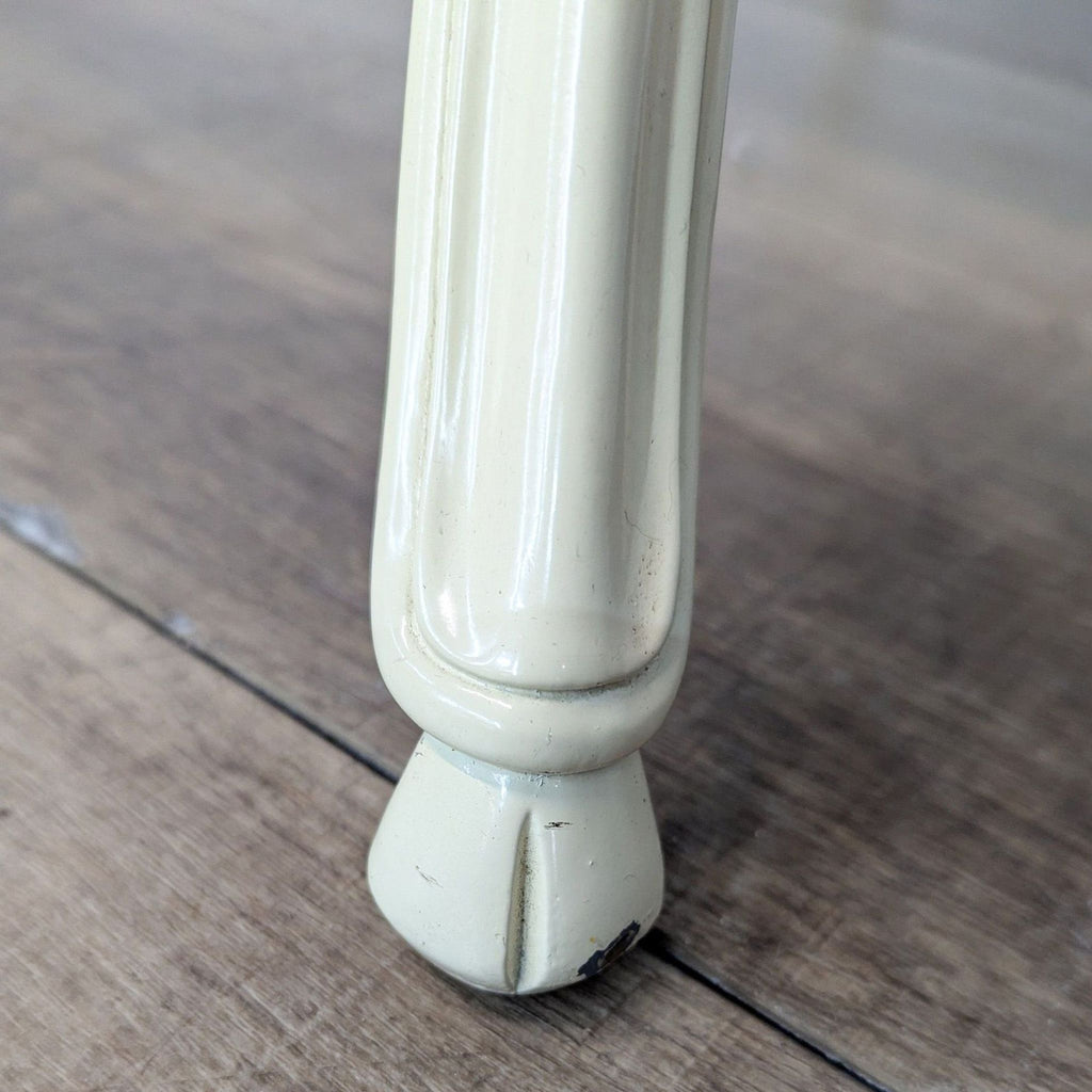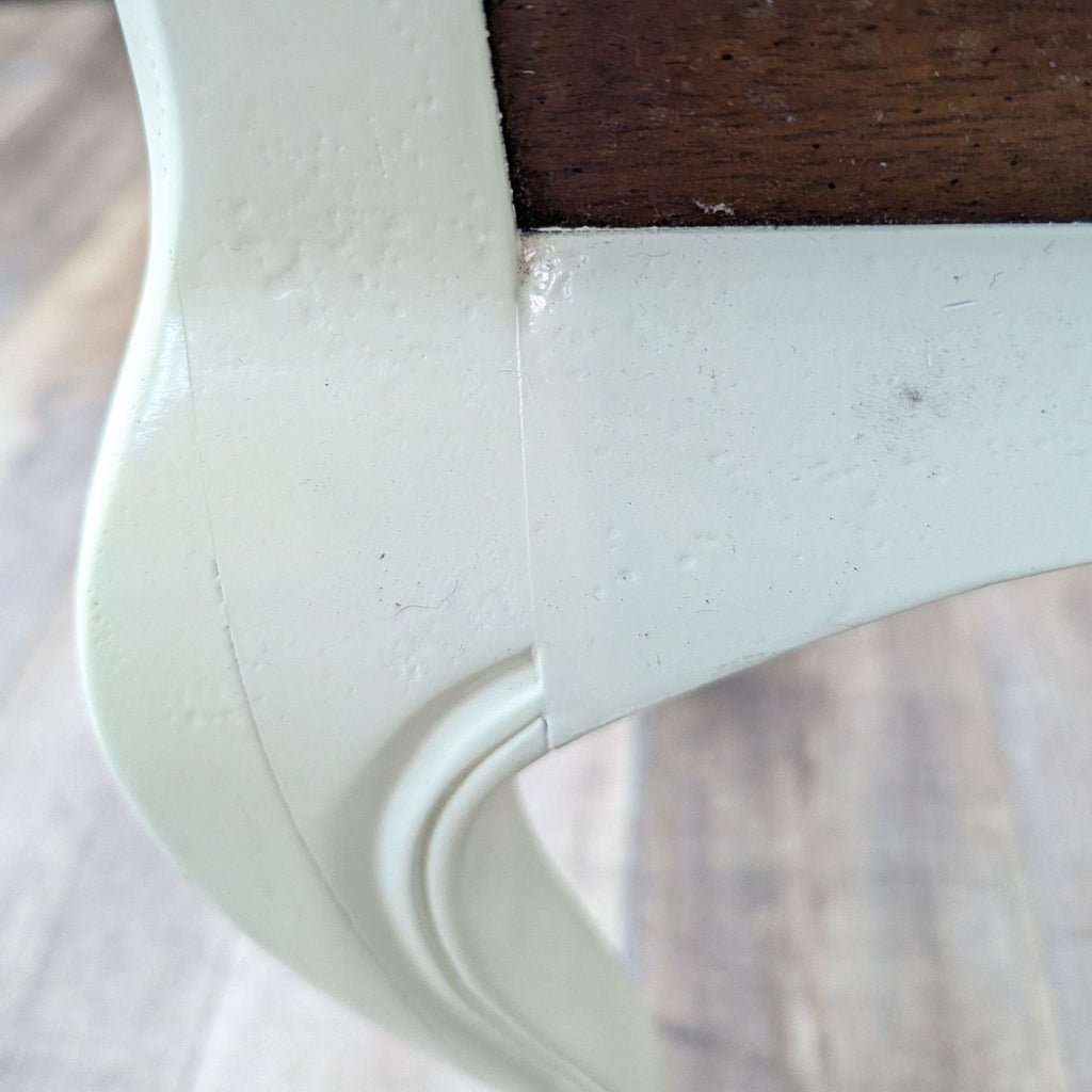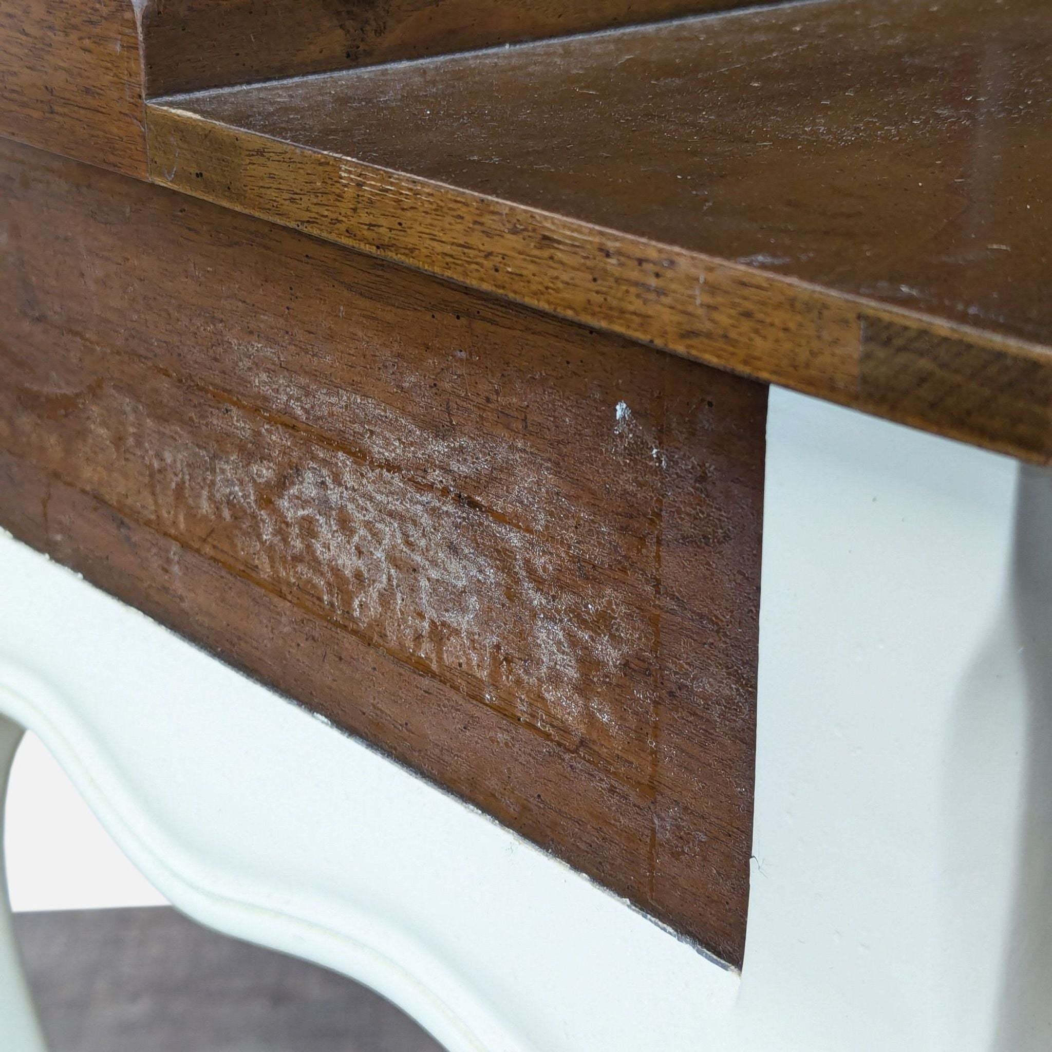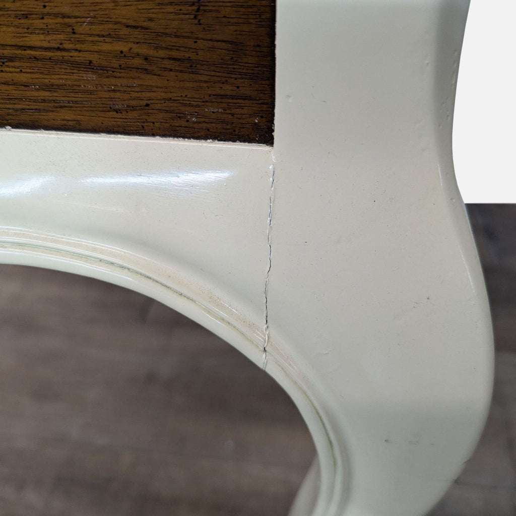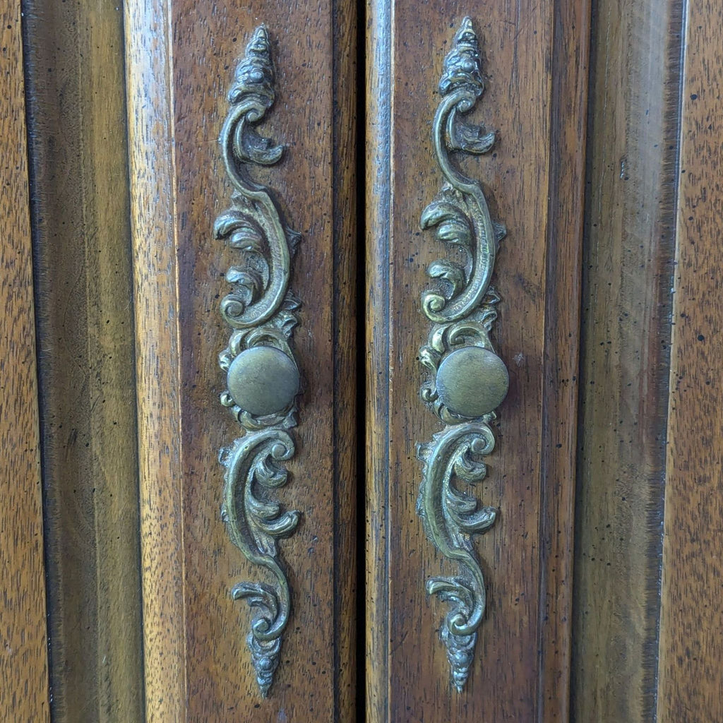 This Bodart desk combines vintage charm with practical design. Featuring a wooden cabinet top with ample storage and classic brass handles, it sits on elegant curved legs painted in a clean ivory finish.