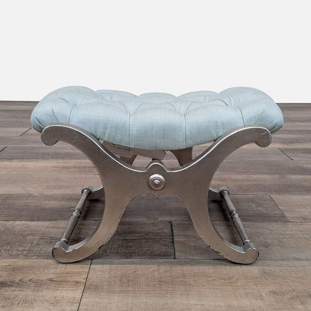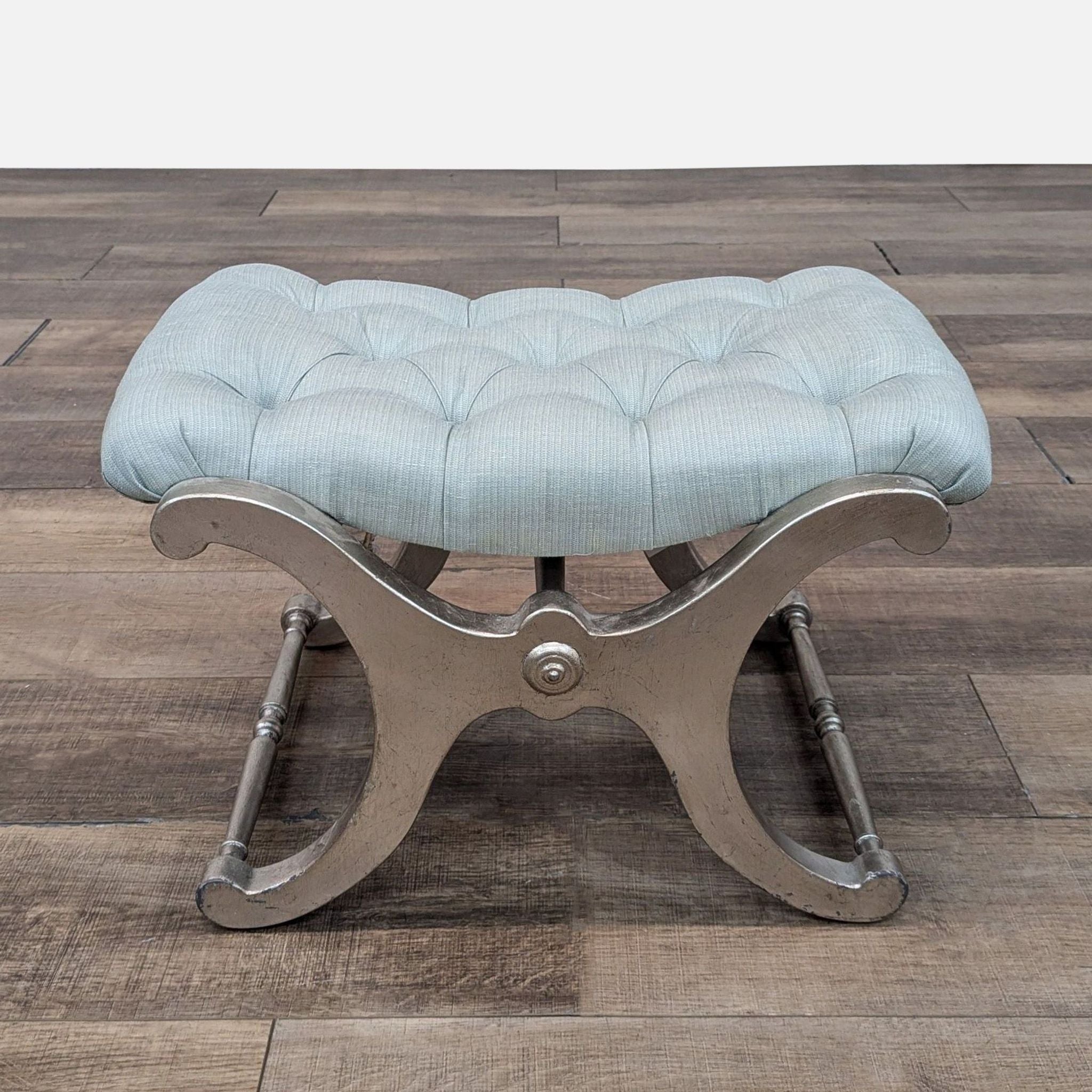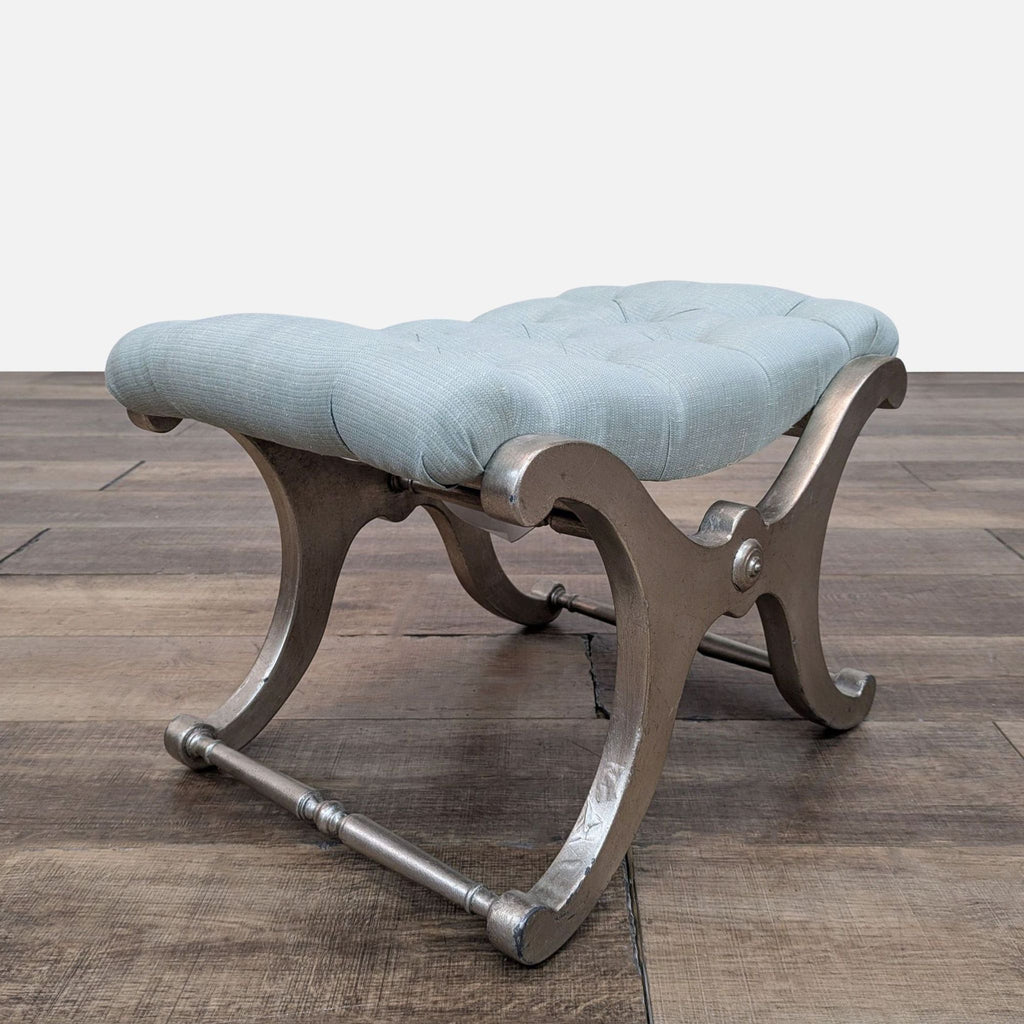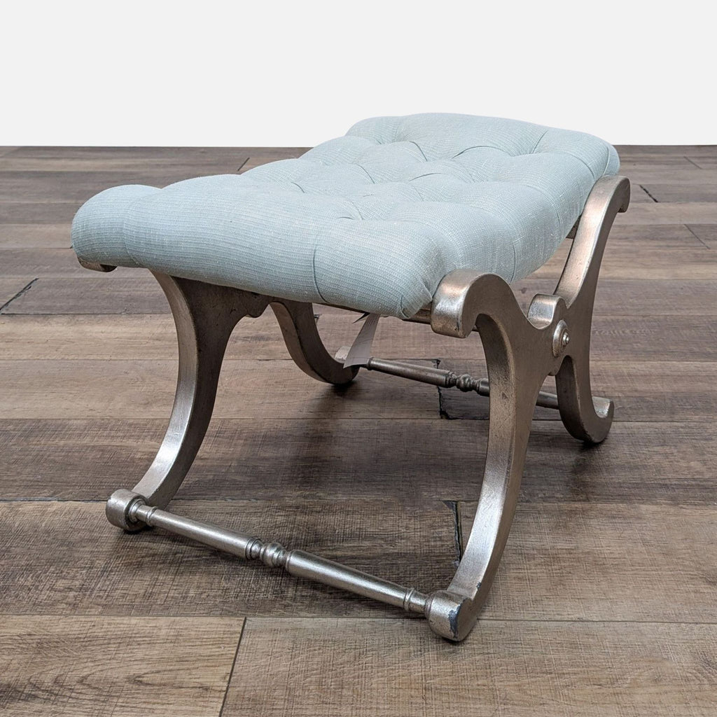 Enhance your space with this stylish ottoman from Hickory Chair. Featuring a soft, tufted cushion in a subtle mint green and a sleek metallic frame.