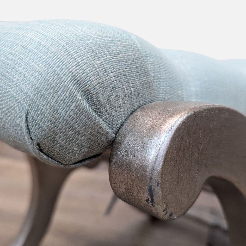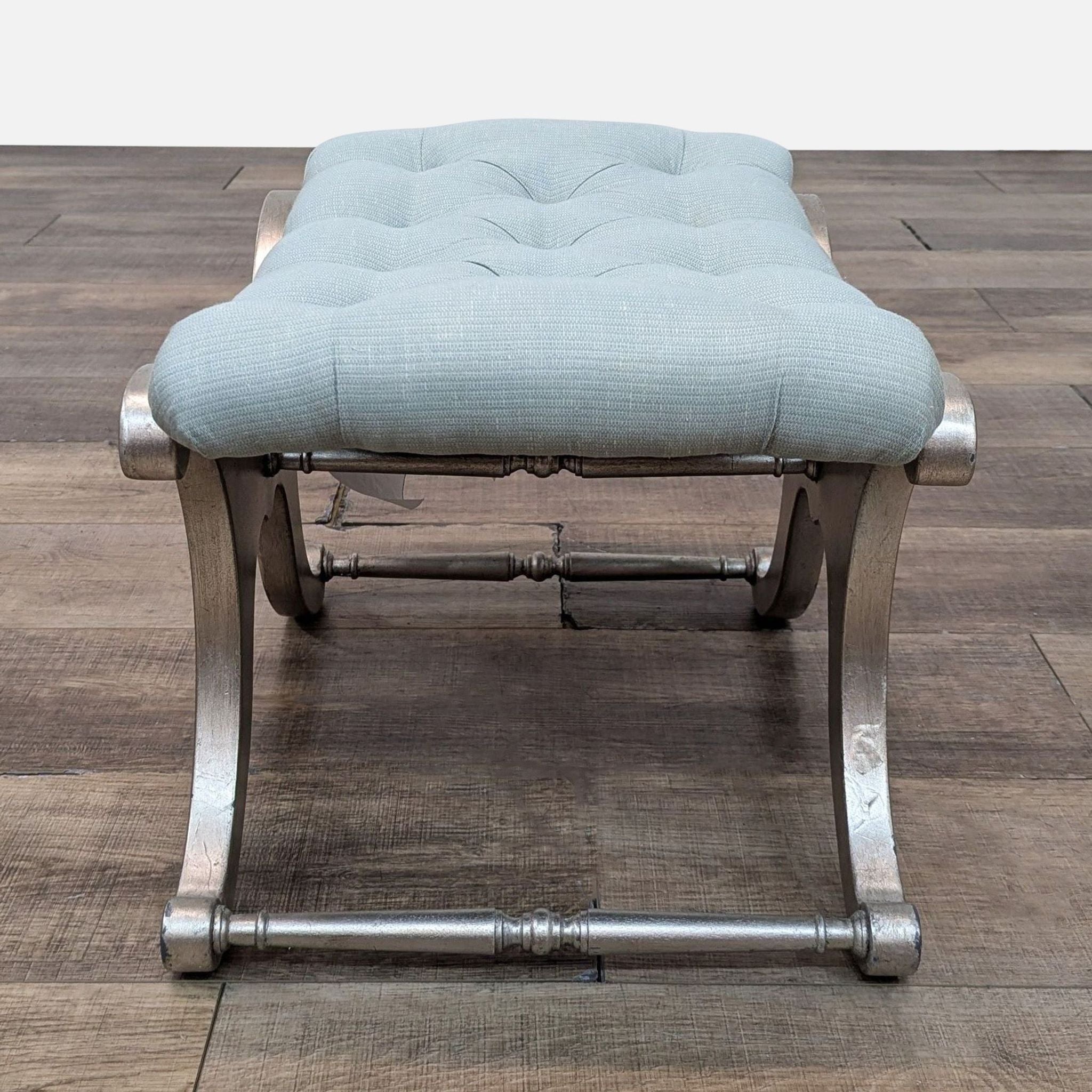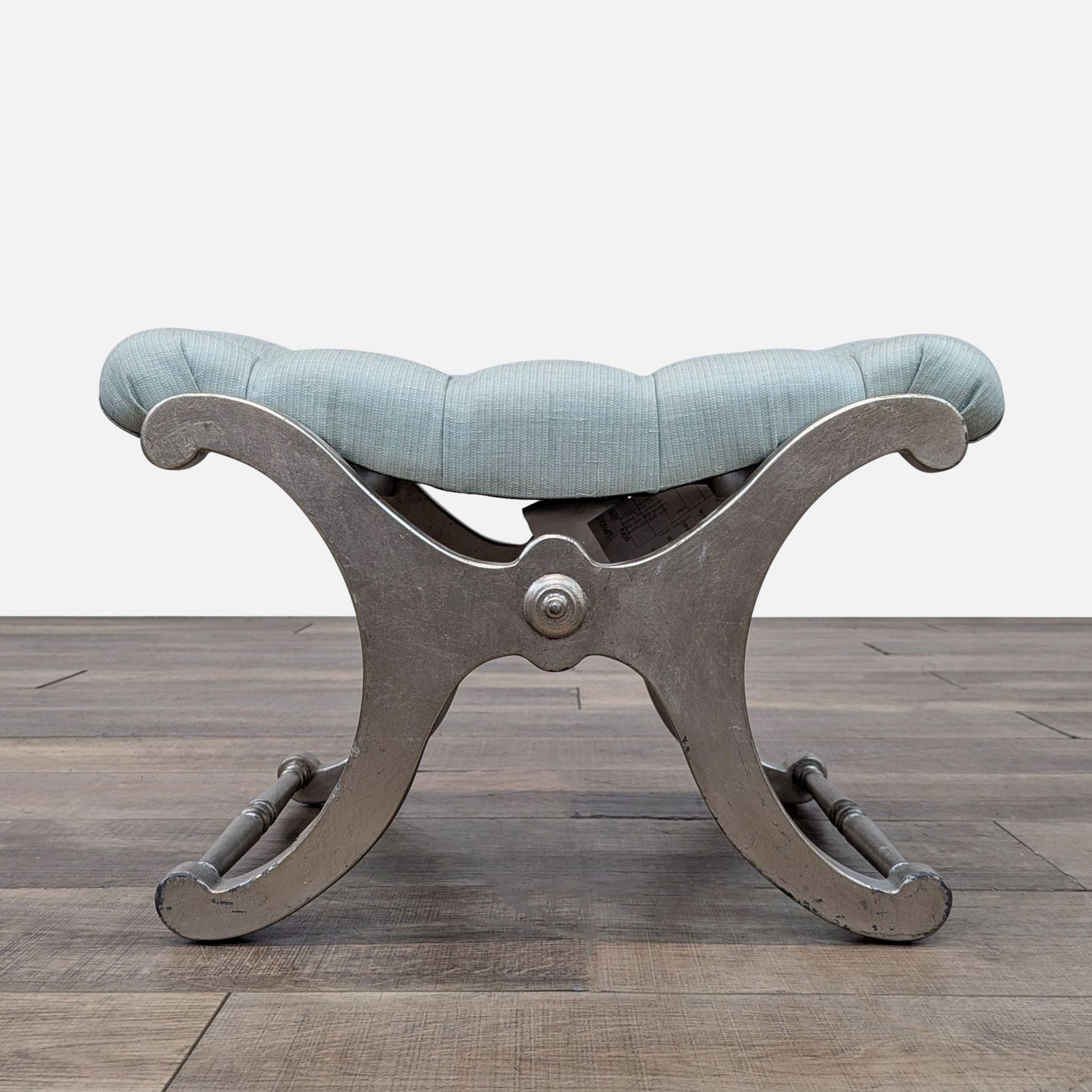 Enhance your space with this stylish ottoman from Hickory Chair. Featuring a soft, tufted cushion in a subtle mint green and a sleek metallic frame.