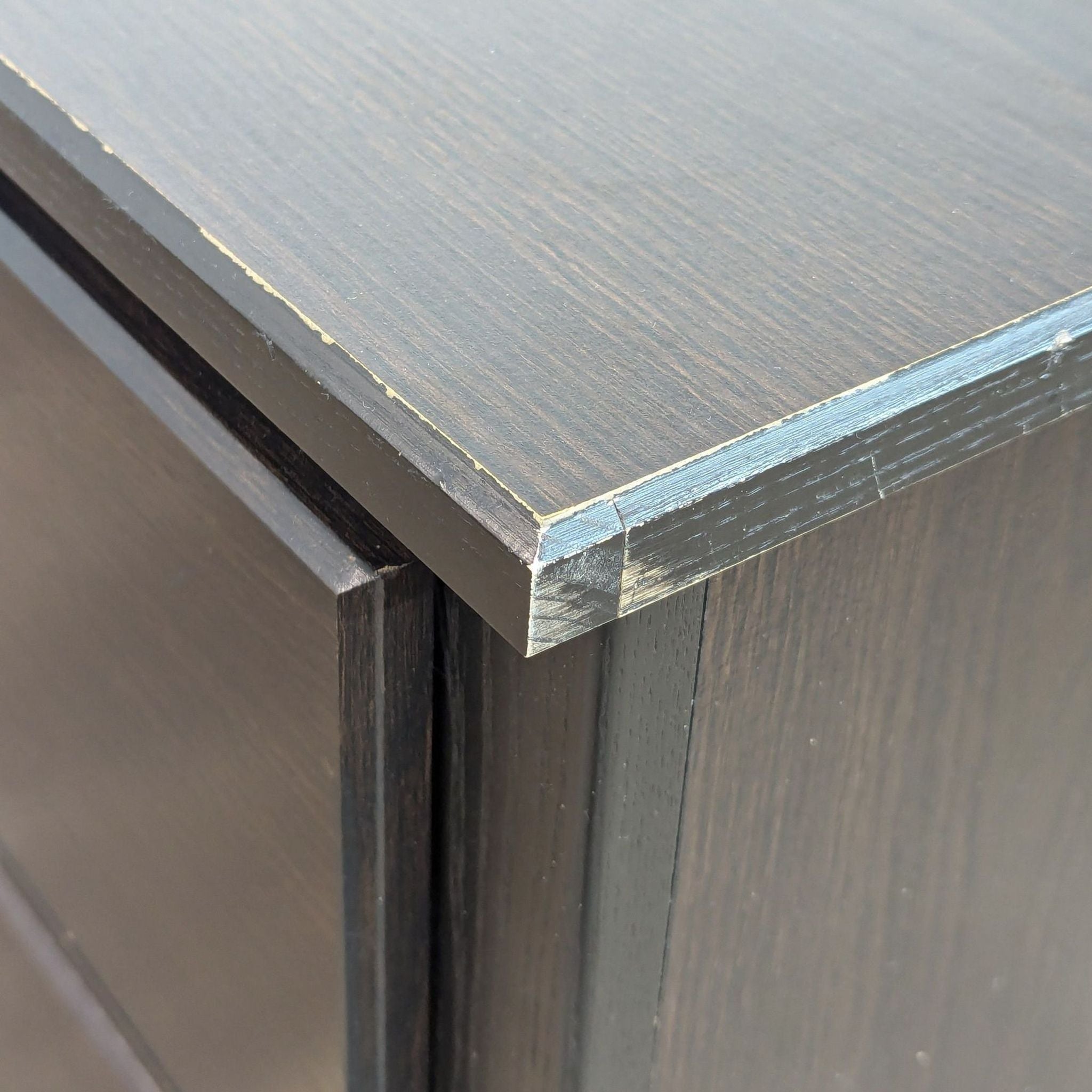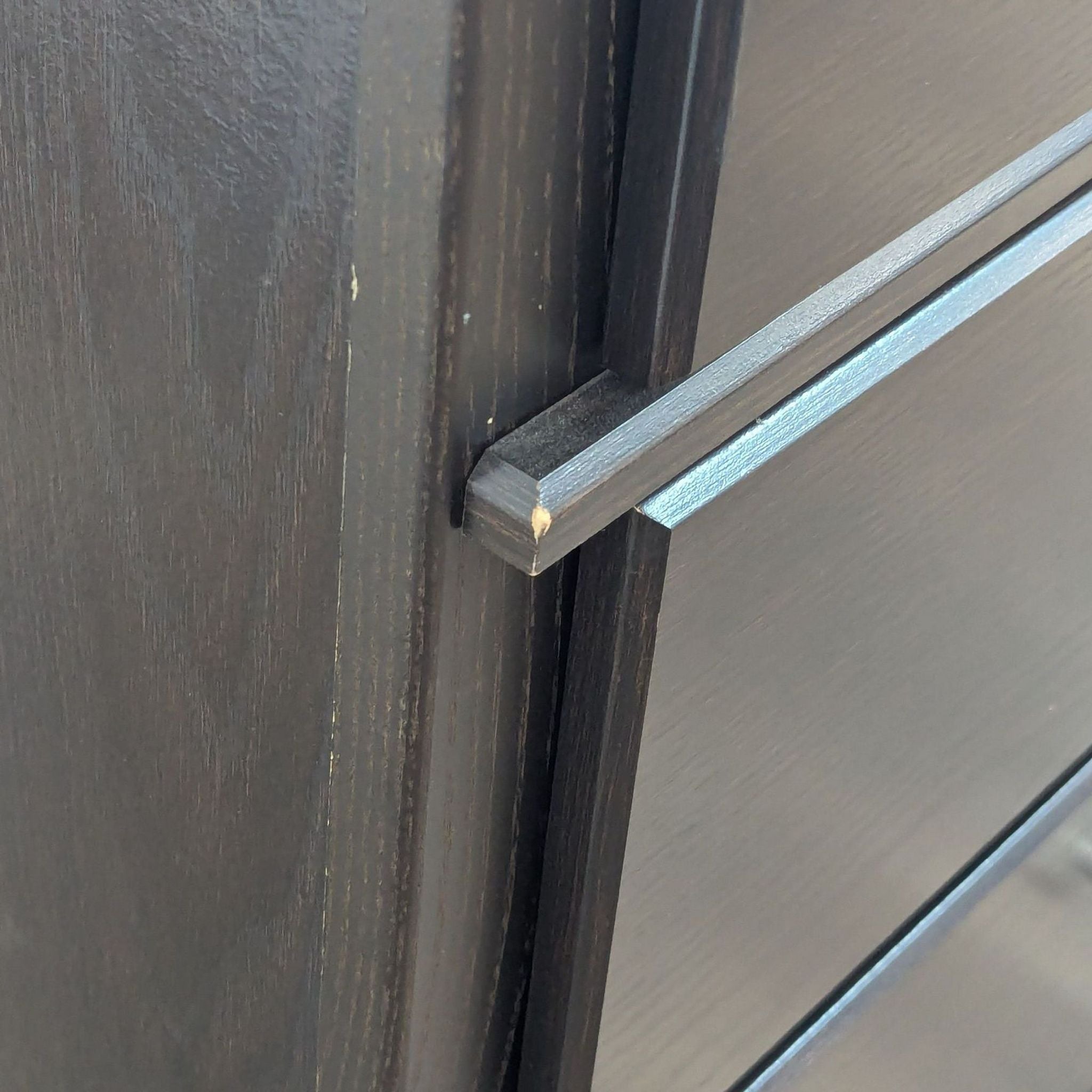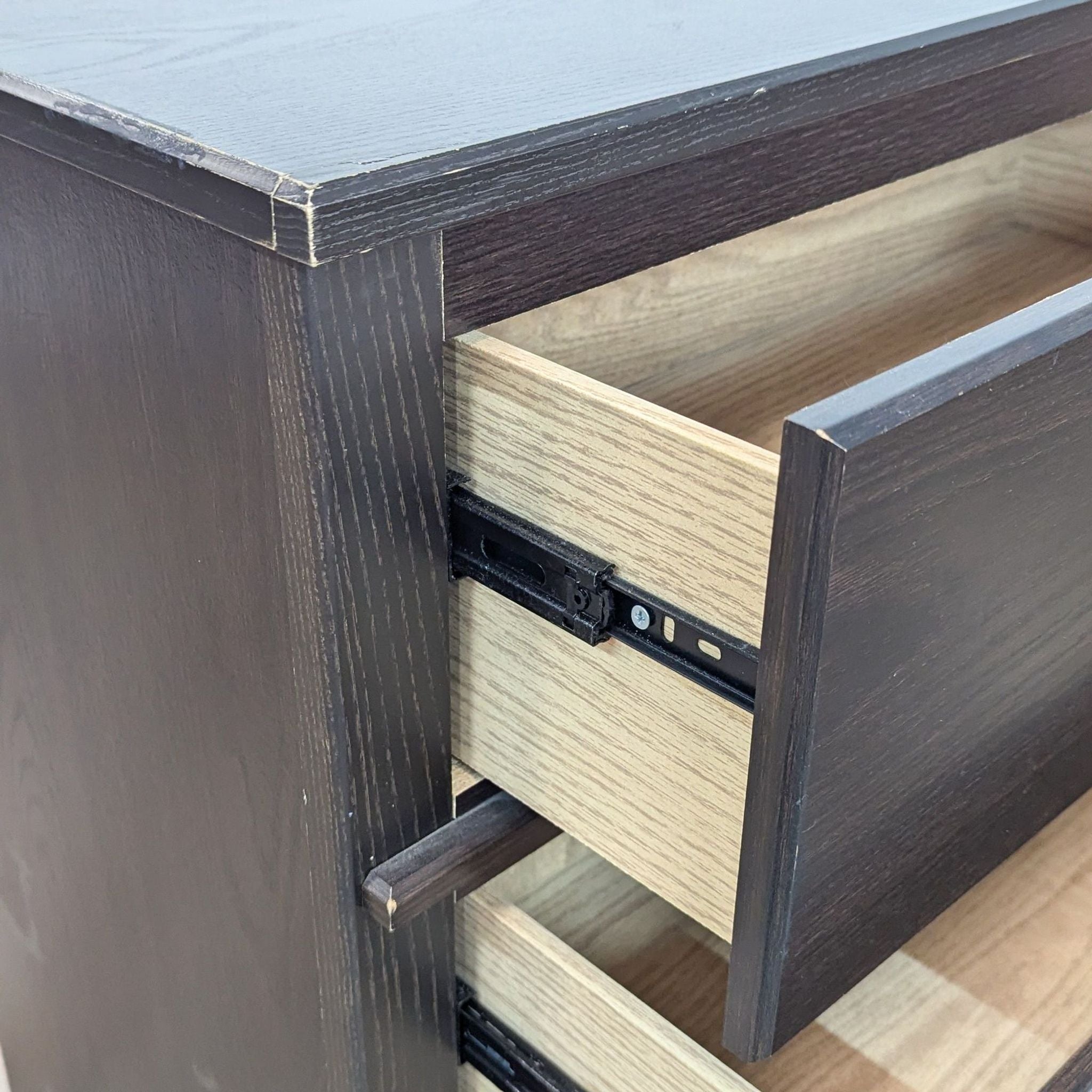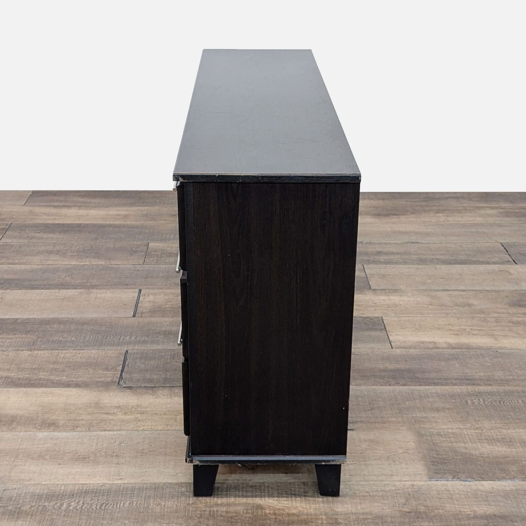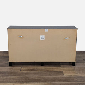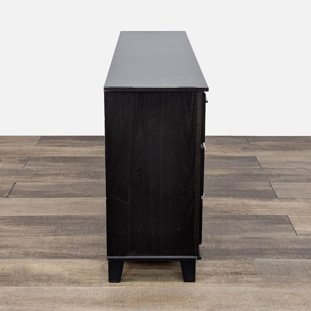 Dakota dresser with six drawers on metal glides and brushed nickel handles.