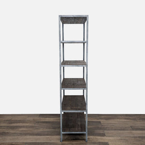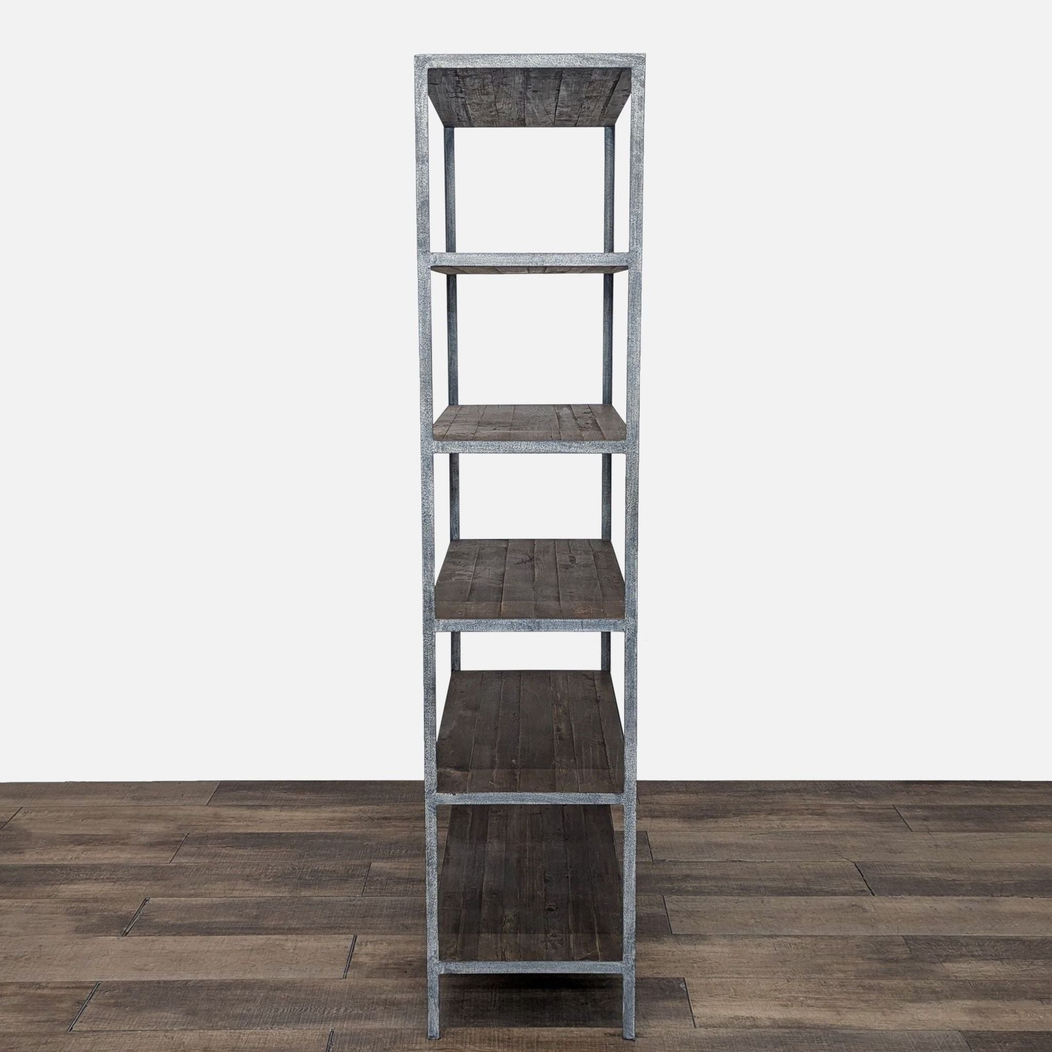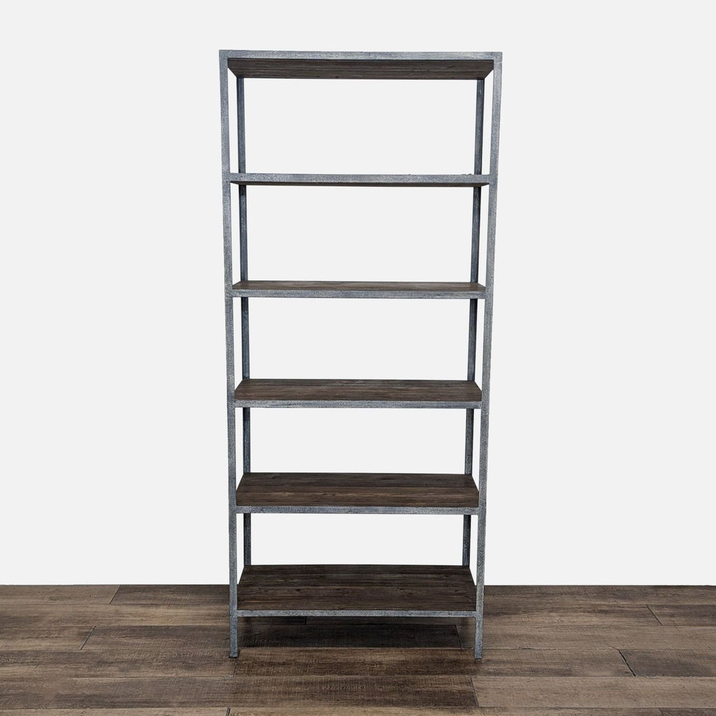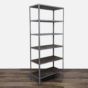 Restoration Hardware Industrial Bookshelf. Featuring a sturdy steel frame and wooden shelves.