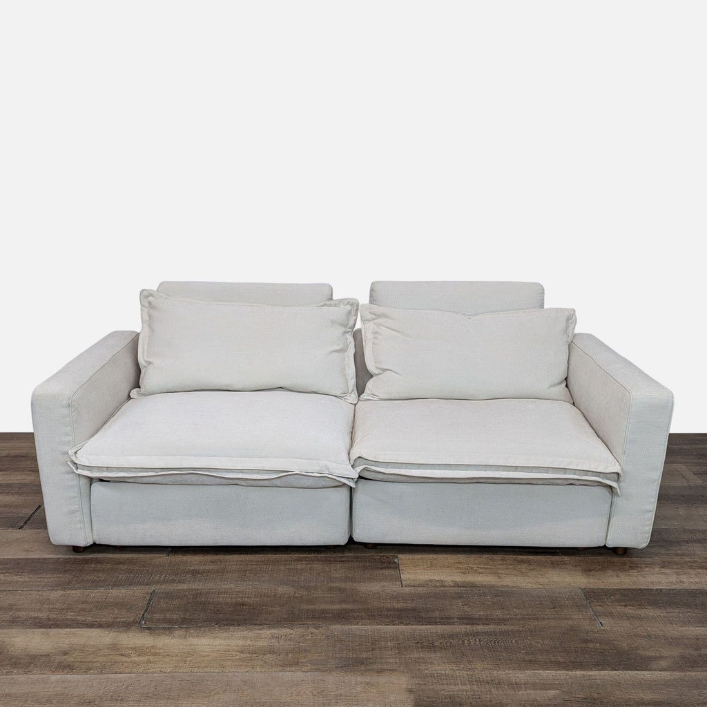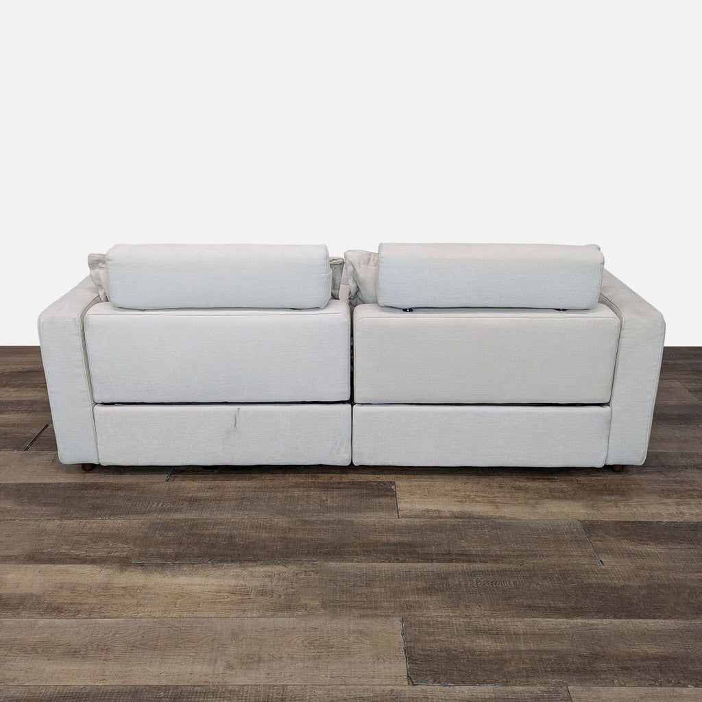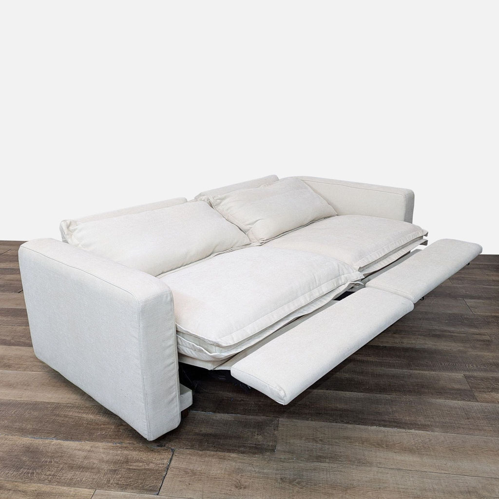 The Luxe sofa by Homebody has three reclining positions: Seated, Relaxed and Zero Gravity Wellness Mode. It also features discreet USB and USB-C Chargers for all your devices.